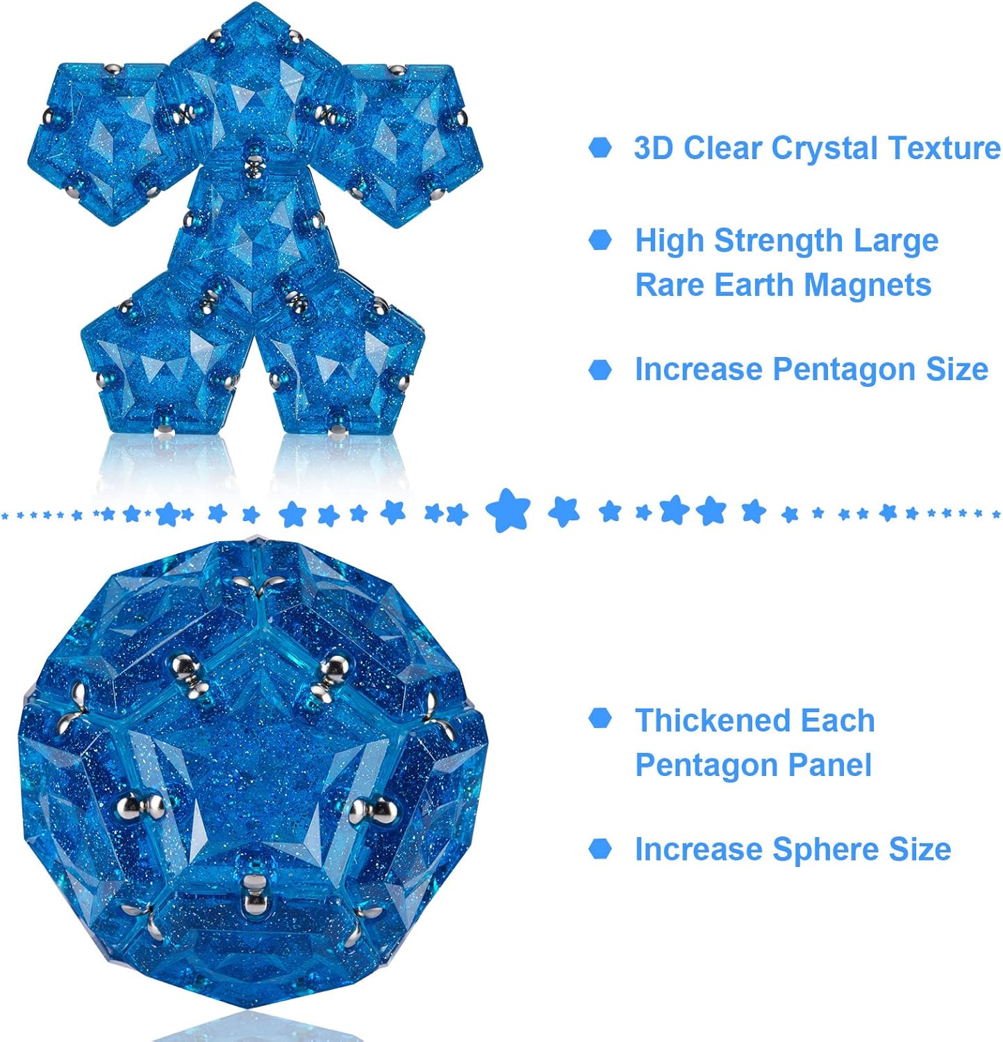 - [Holographic Glitter Panel]: Each pentagonal panel has stunning crystals and iridescent glitter, which emits dazzling iridescent when exposed to direct sunlight or lamplight. Each surface is cut into convex and concave shapes to better trigger nerve endings in fingertips and boost IQ.