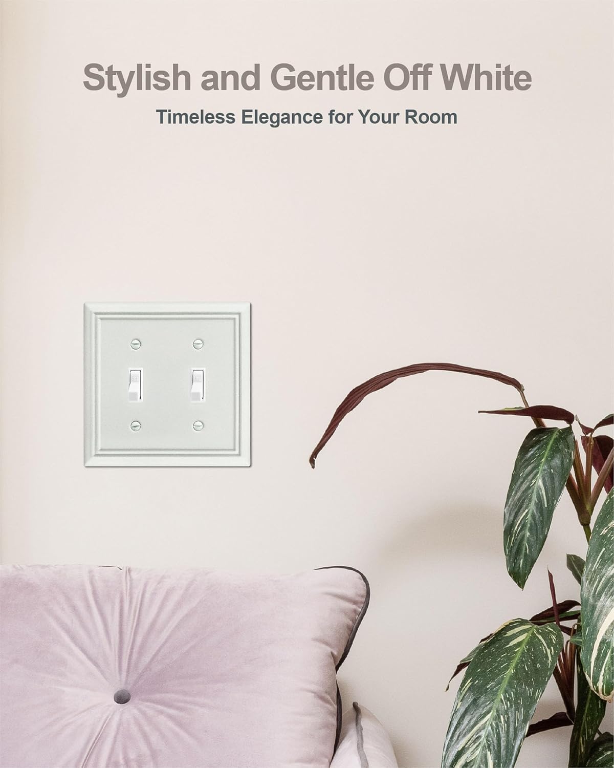 - [Simple Elegance] - Elevate your home decor with stylish off-white metal toggle wall plate, exuding sophisticated simplicity. The off-white wall plate cover features a warm, muted undertone that adds a cozy touch compared to a pure white