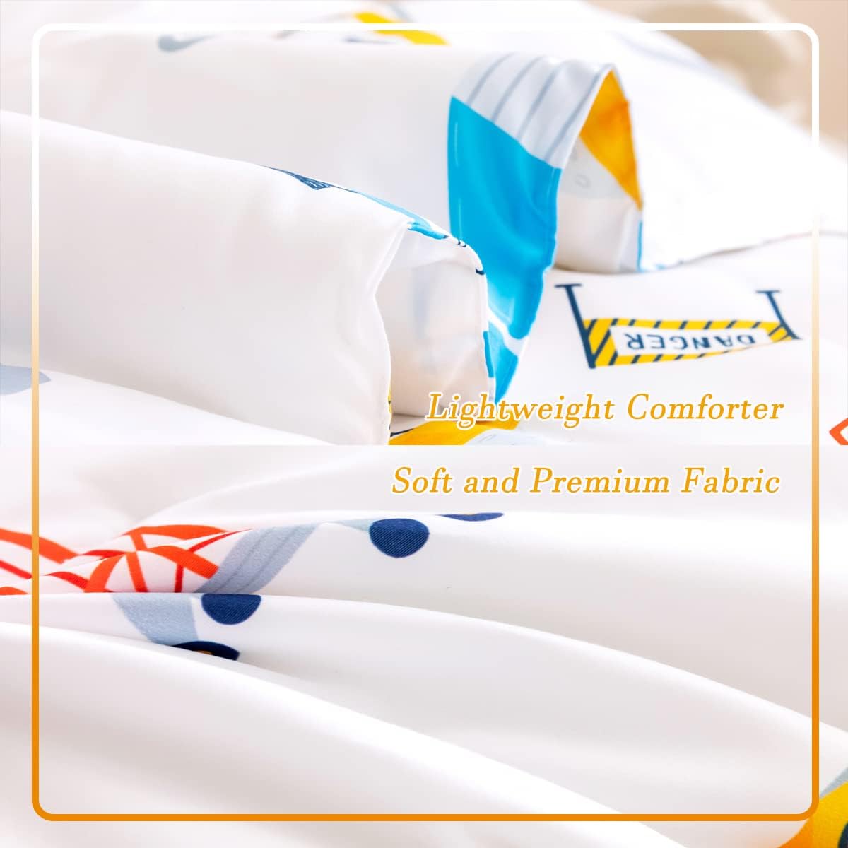 - 【EASY CARE】This colorful tractors toddler bedding is machine washable in cold water with gentle cycle, tumble dry at low temperature. Do not bleach. Do not soak. As the comforter is packaged in vacuum bags, it might be some wrinkles when you receive it. You can put it in the dryer on low heat to help take the wrinkles and will come out fluffy.
