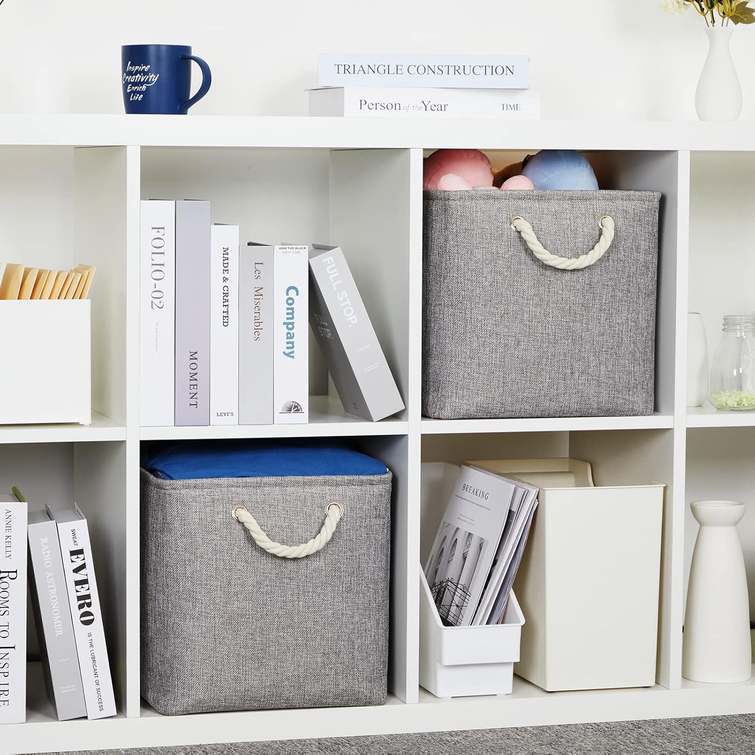 DULLEMELO Fabric Storage Bins 16x12x12 inches, Large Rectangular Storage Baskets 2 Pack, Collapsible Storage Organizer Decorative Storage Boxes for Closet, Toys, Clothes, Home, Office (Grey)