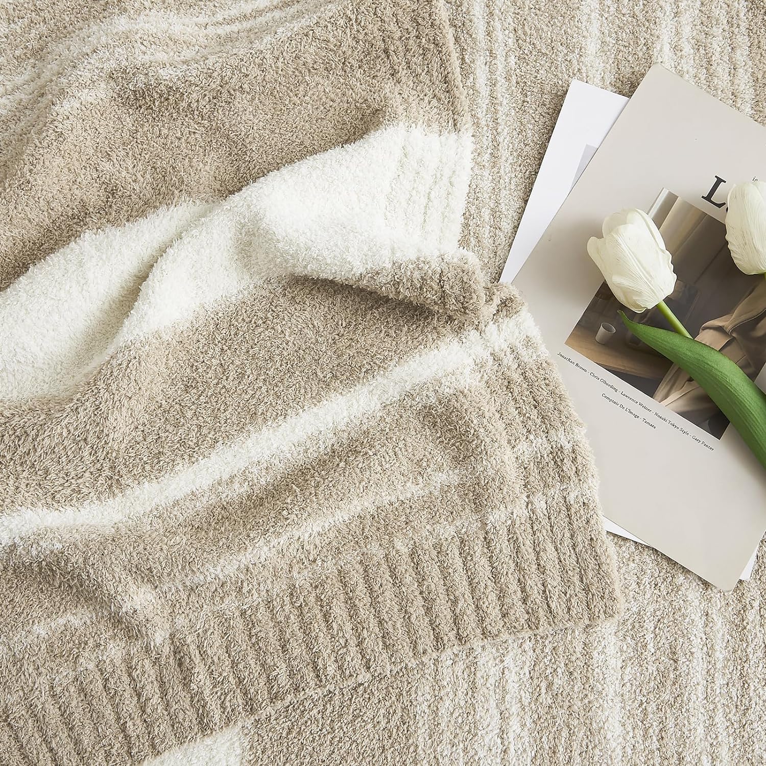 WRENGONGE Khaki Throw Blanket, 50x70 Soft Cozy Striped Throw Blankets for Couch, Sofa, Bed, Travel, Lightweight Fluffy Warm Plush Decorative Blankets for Women, Men,Kids Gift