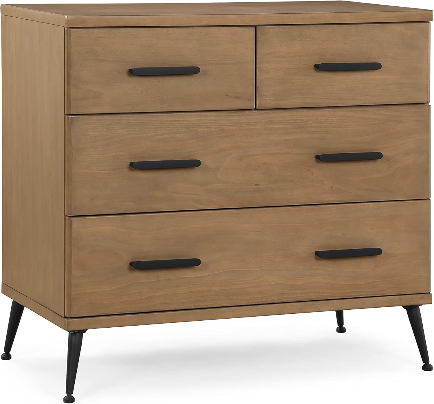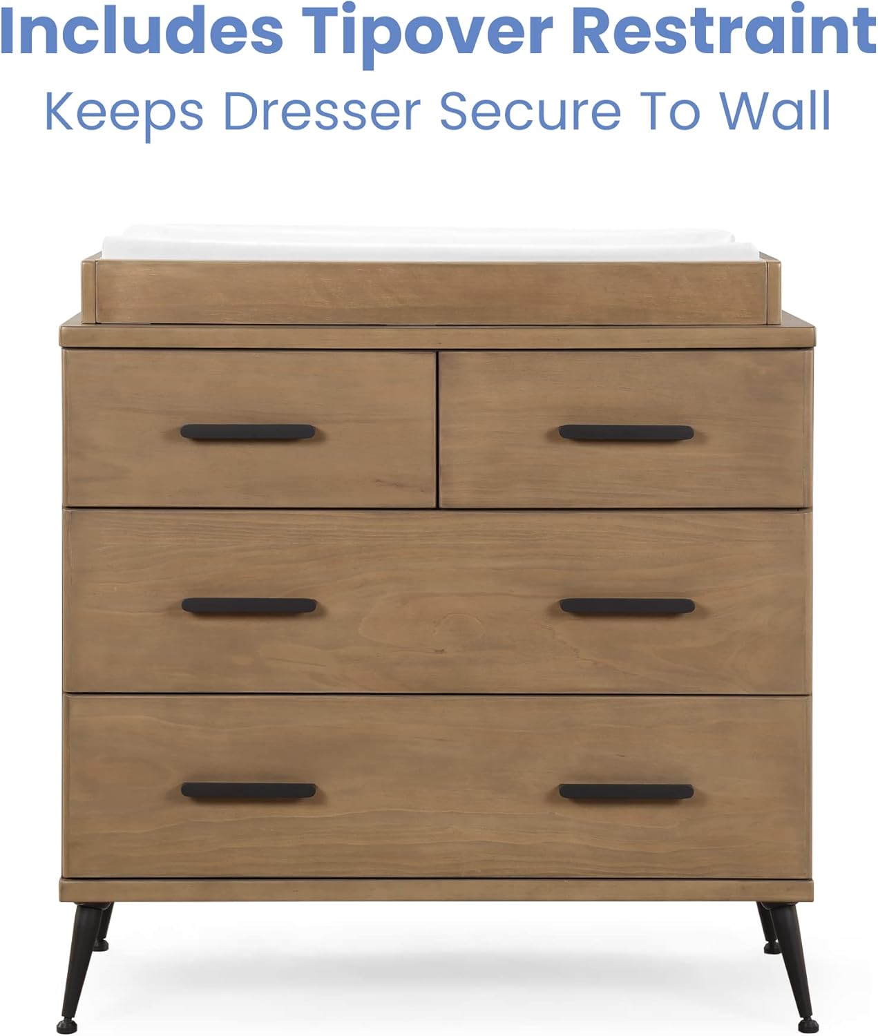 - Dresser Features: Crafted of sturdy, sustainable materials like New Zealand pine to give it plenty of longevity. For your childβs safety, this dresser is outfitted with an interlocking drawer system that limits the number of drawers that can be opened at one time. For additional security, we strongly recommend that all dressers in your home be anchored; dresser includes a wall anchor.