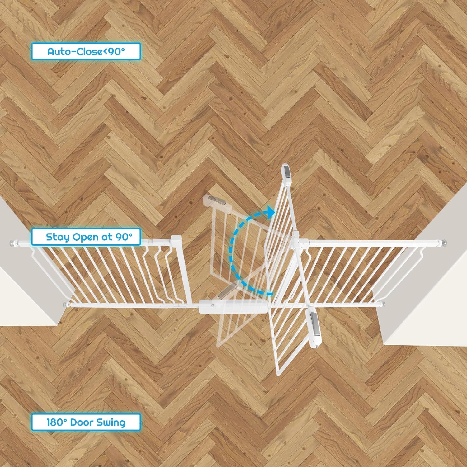 - Hassle-Free Installation: Pressure mounted tension baby gate with 4 pressured adjustment bolts can be easily and quickly installed within 10 minutes. No drilling or tools needed to protect your walls from damage. Note: Please do not remove the zip tie which is to fix the latch to the frame for easy installation until baby/child safety gate is completely assembled, and recommend to carefully read our assembly instructions & user manual before installing.