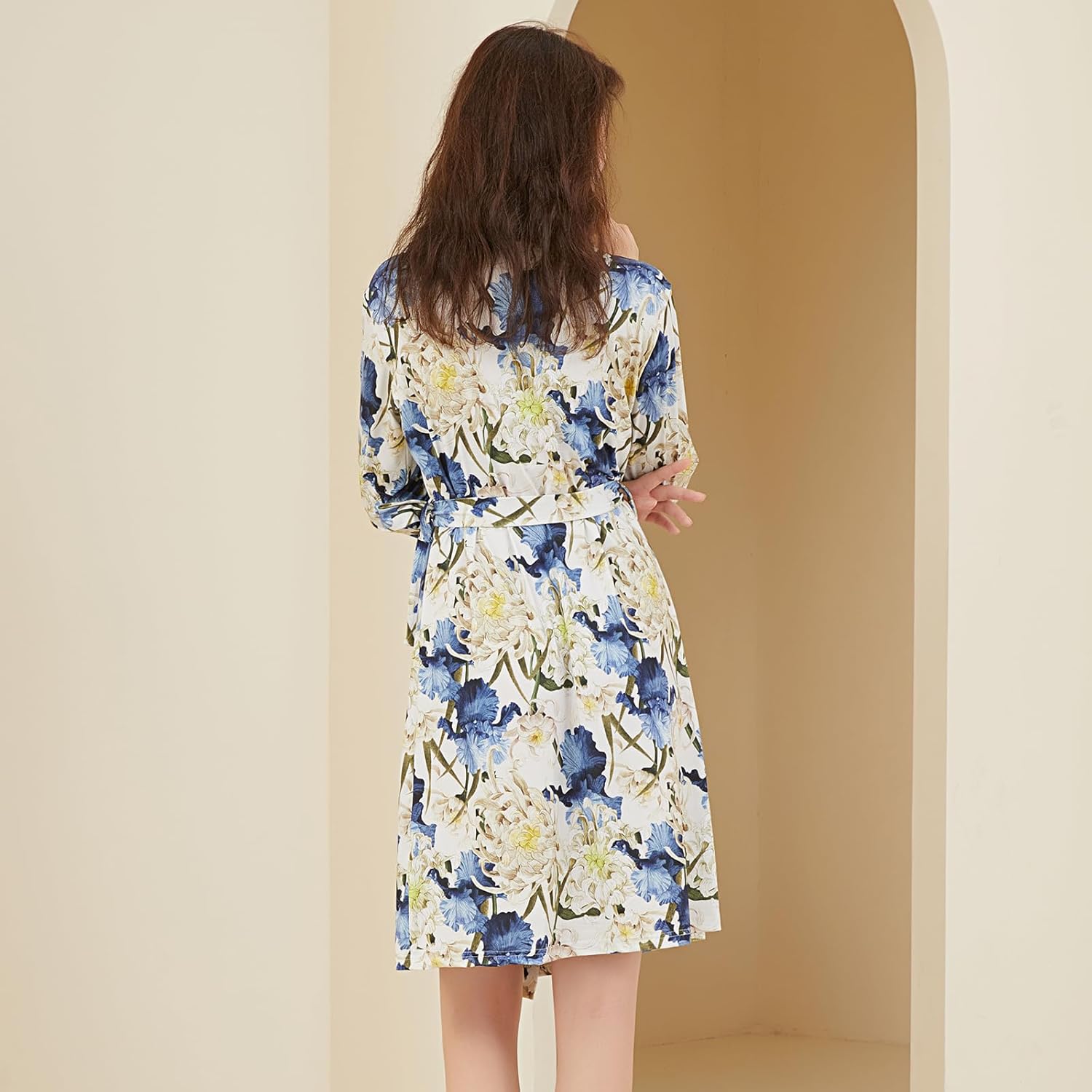 Galabloomer Maternity Robe and Baby Receiving Blanket, Matching Mommy Labor Delivery Robe and Swaddle Set (s, blue white)