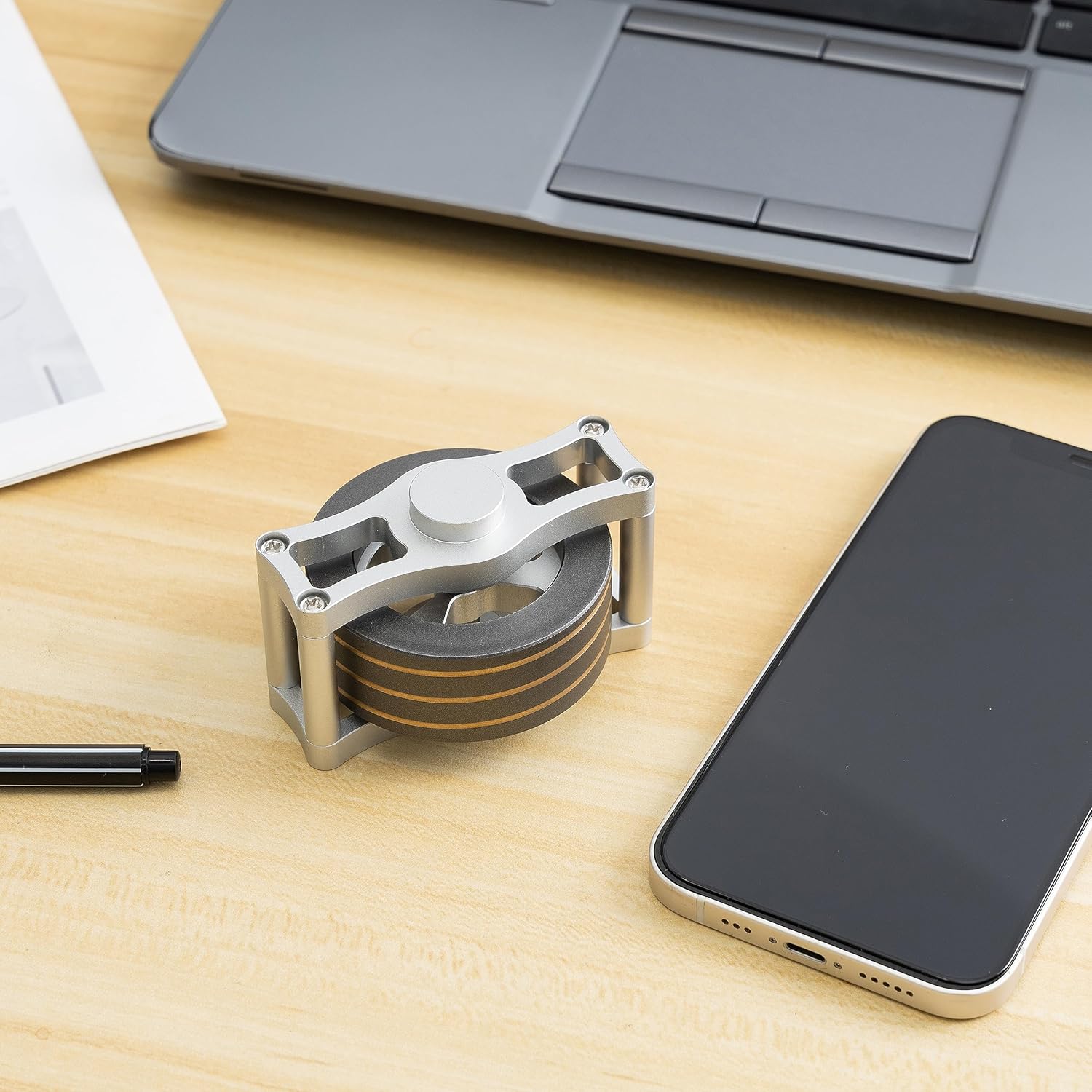 Brass Kinetic Spinning Top, Desk Fidget Toy for Adults, Stress Relief Toy for Office, Gray