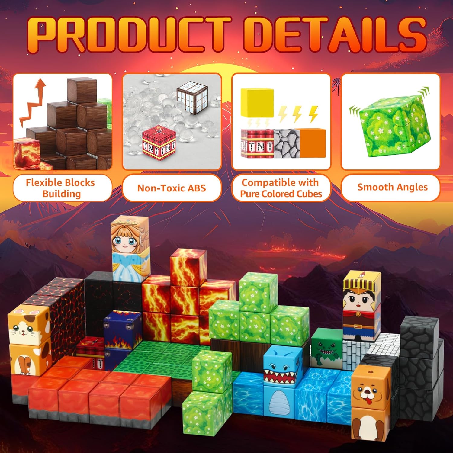 - Unlocking Your Child's Potential - Magnetic blocks are one of the best creative toys for kids who love to build. Kids can use their imagination to build volcanoes, forests, lava waterfalls and more. With this magnetic building block, kids can use their creativity, spatial awareness and problem solving skills while experimenting with gravity, magnetism and kinetic energy. It's perfect for kids on the go or in the classroom.