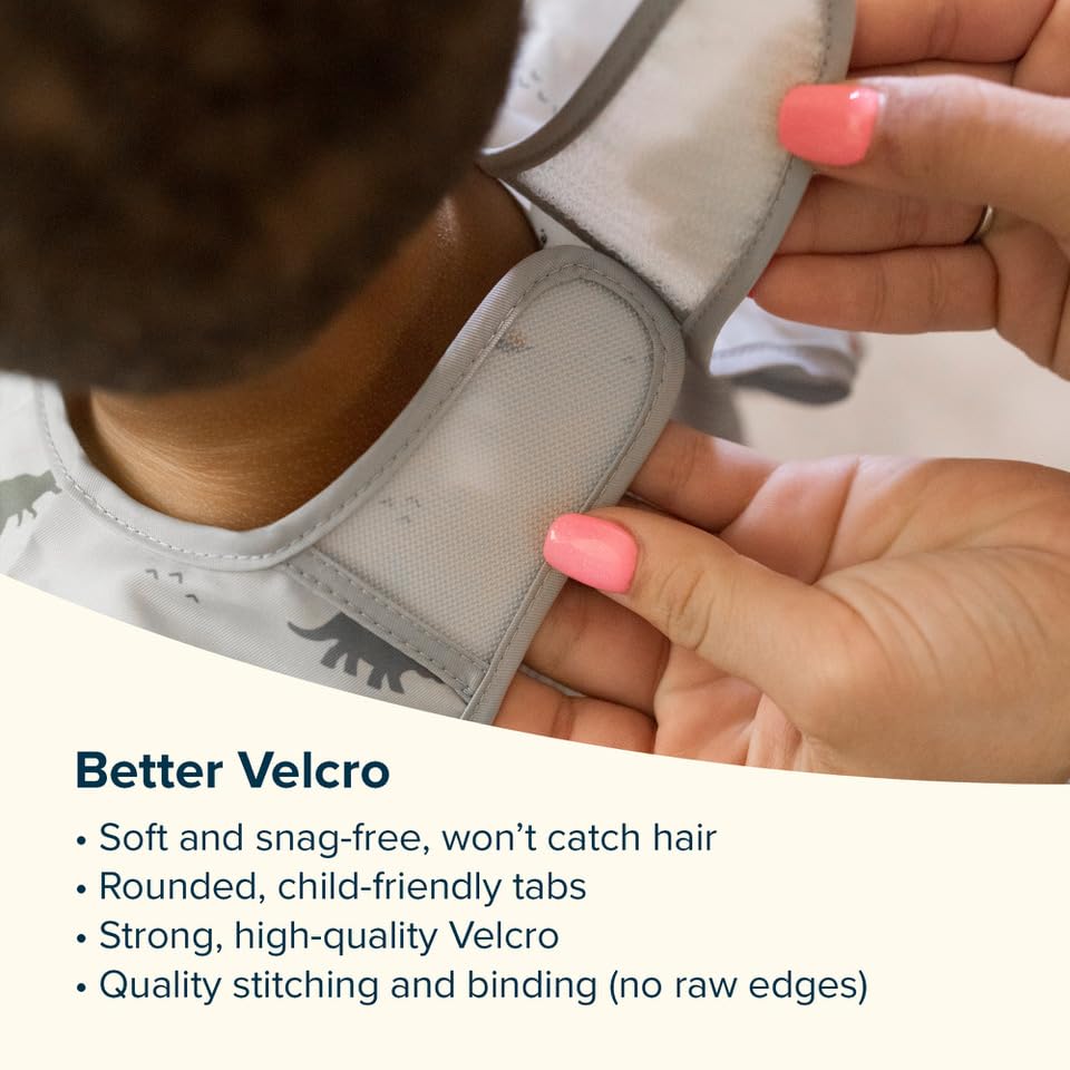 - TRAVEL MUST HAVES: Our baby feeding bib is the ultimate travel companion.Soft,lightweight and waterproof,this infant bib features a no-scratch closure that's gentle on your child.It protects clothes,floors and tables from messes.Bring your baby anywhere with confidence,knowing you've got the right toddler bib and baby smock bib for the job.