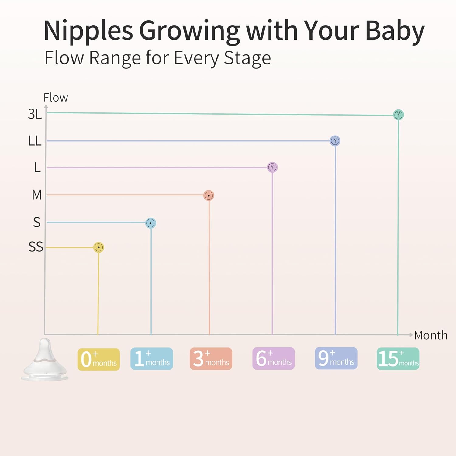 - SOFT AND FLEXIBLE SILICONE NIPPLE: For seamless switch between breast and bottle. Itβs super soft and flexible to allow for natural and smooth tongue movement. Latch-on Line: The new design with latching curve of the nipple is guiding for babyβs appropriate latch, so as to achieve effective adsorption.