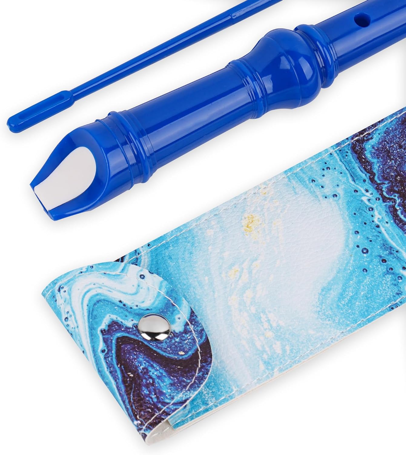 Recorder Instrument for Beginner Kids Adults,8-Hole Soprano Descant Recorder Music Flute with with Cleaning Rod & Leather Case For School Student Home Entertainment(2-Blue Quicksand)
