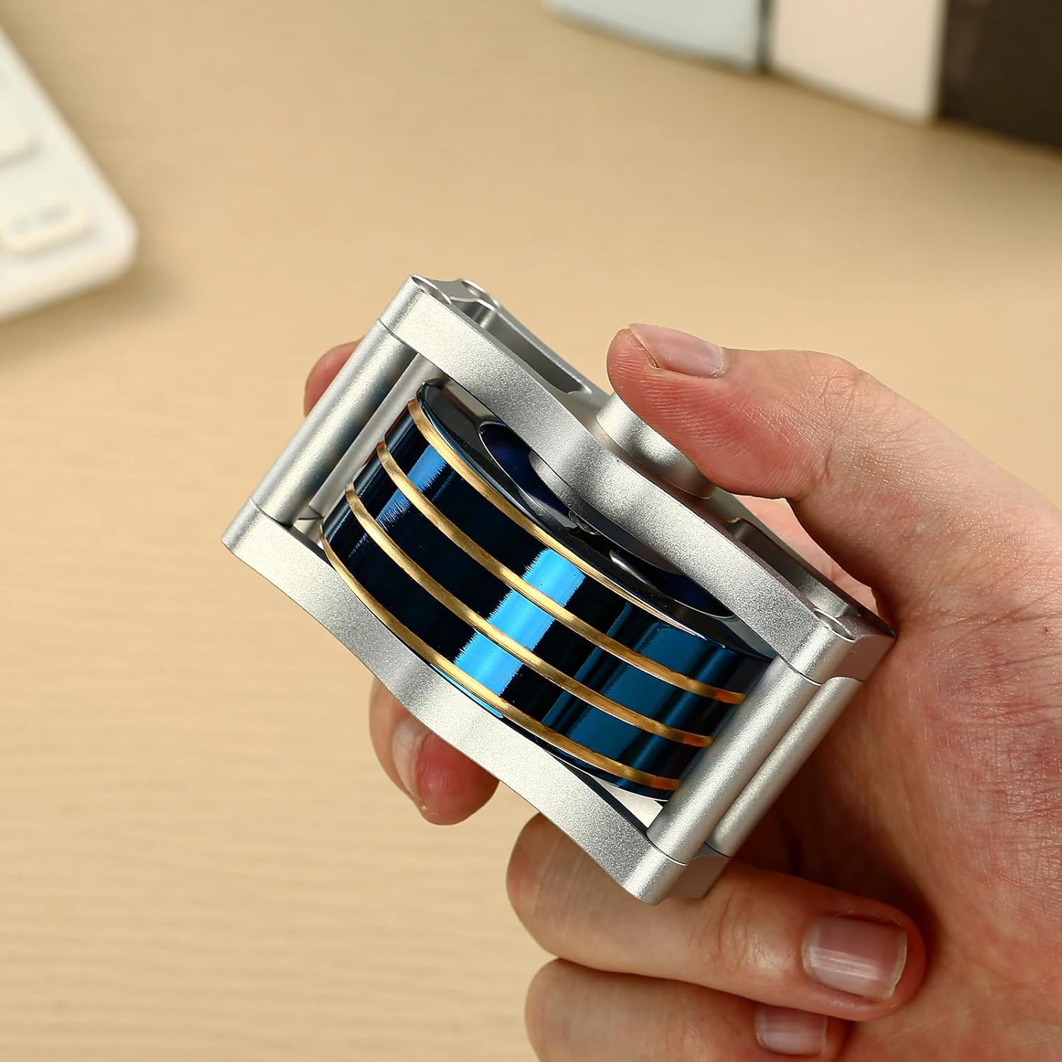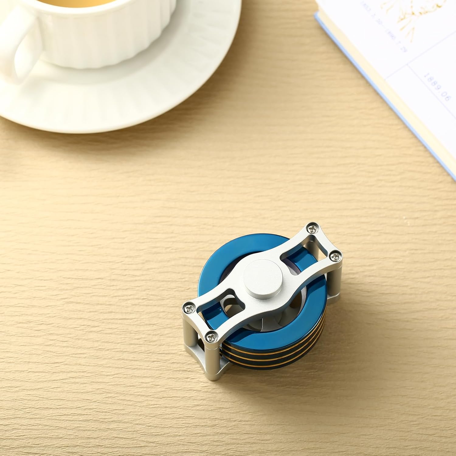 Metal Spinning Top Fidget Toys Perpetual Motion Machine, Silent Spinners Gyro Desk Toys Tech Gadgets for Adults with Anxiety, Kinetic Toy Long Lasting Exceed 30 Mins, Illusion Shiny Blue