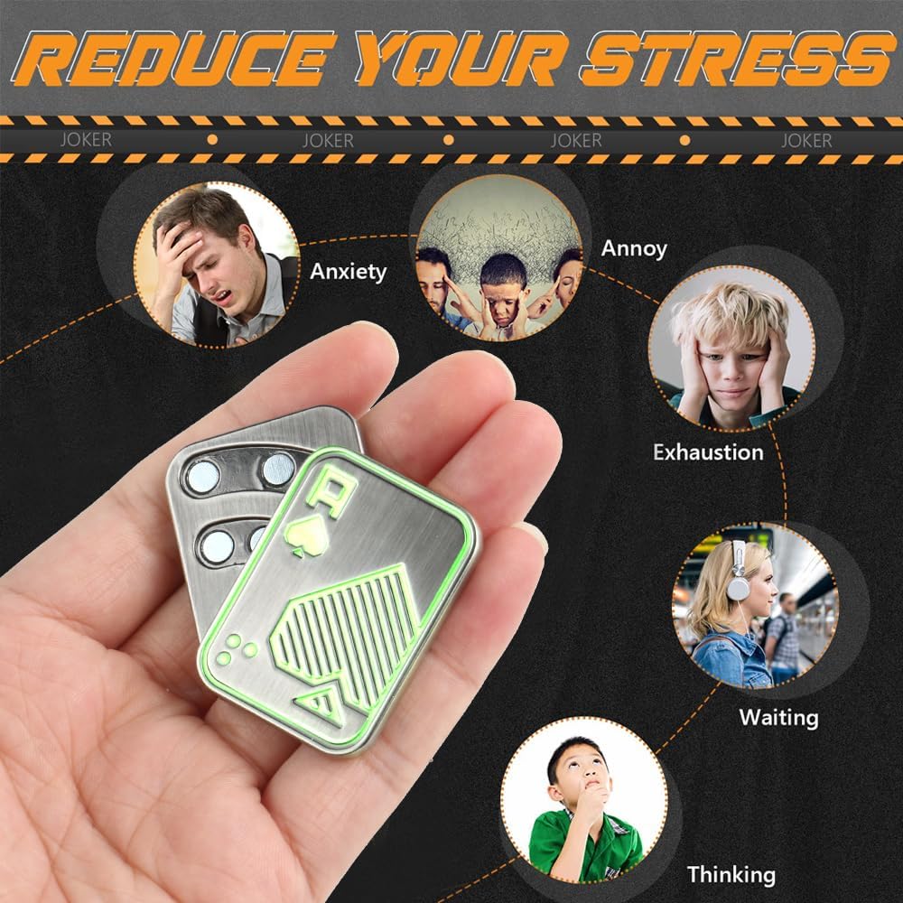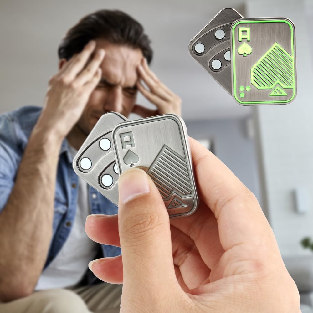 Magnetic Metal Fidget Toys - Metal Poker Push Card Fidget Slider Stress Relief Toy, Men’s EDC Toy Fidget Toy Haptic Coin, Office Desk Toys Gifts for Boyfriend and Father (Glow Silver AA)
