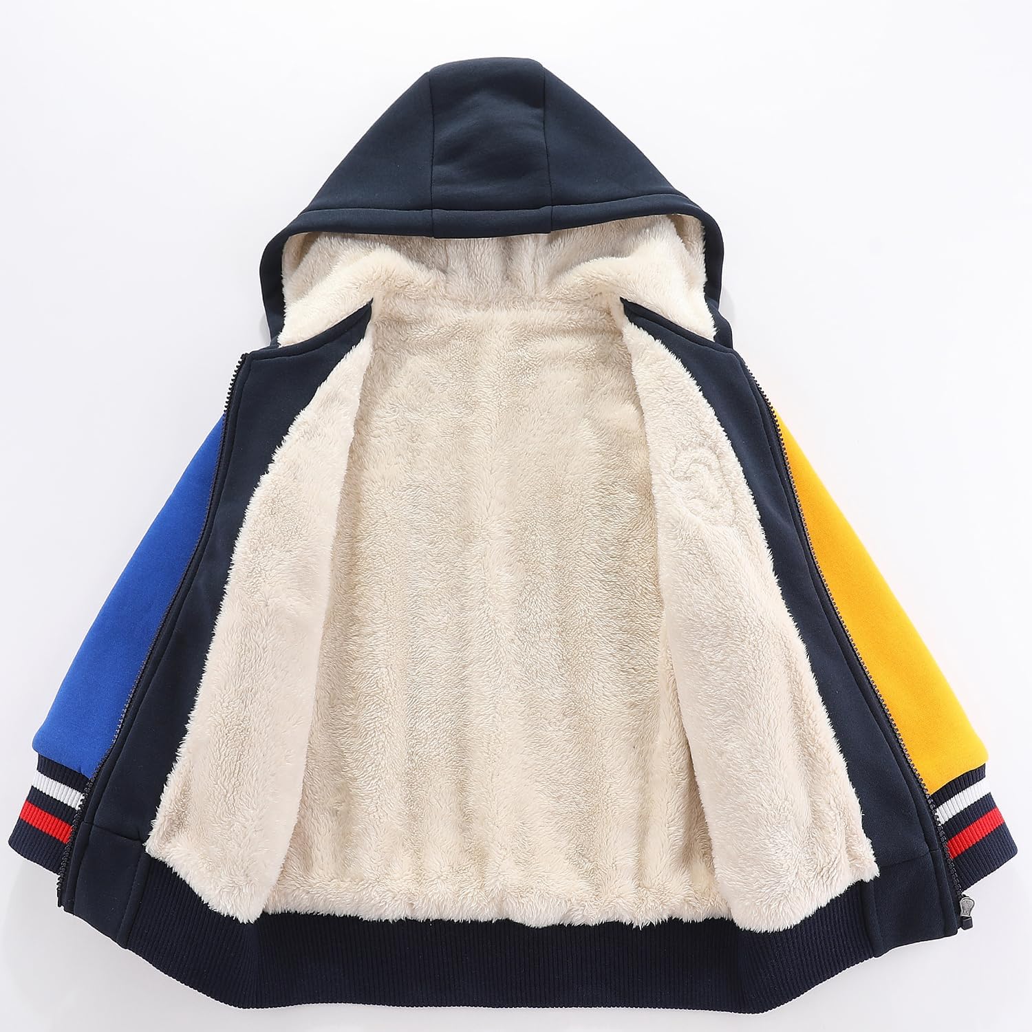 - Boy's hoodies are crafted from soft and breathable sweatshirt fabric,and they feature a plush FLEECE LINED cover that extends throughout the entire jacket. This includes the arms, back, front, and hood, ensuring that your child stays comfortably warm all day long.
