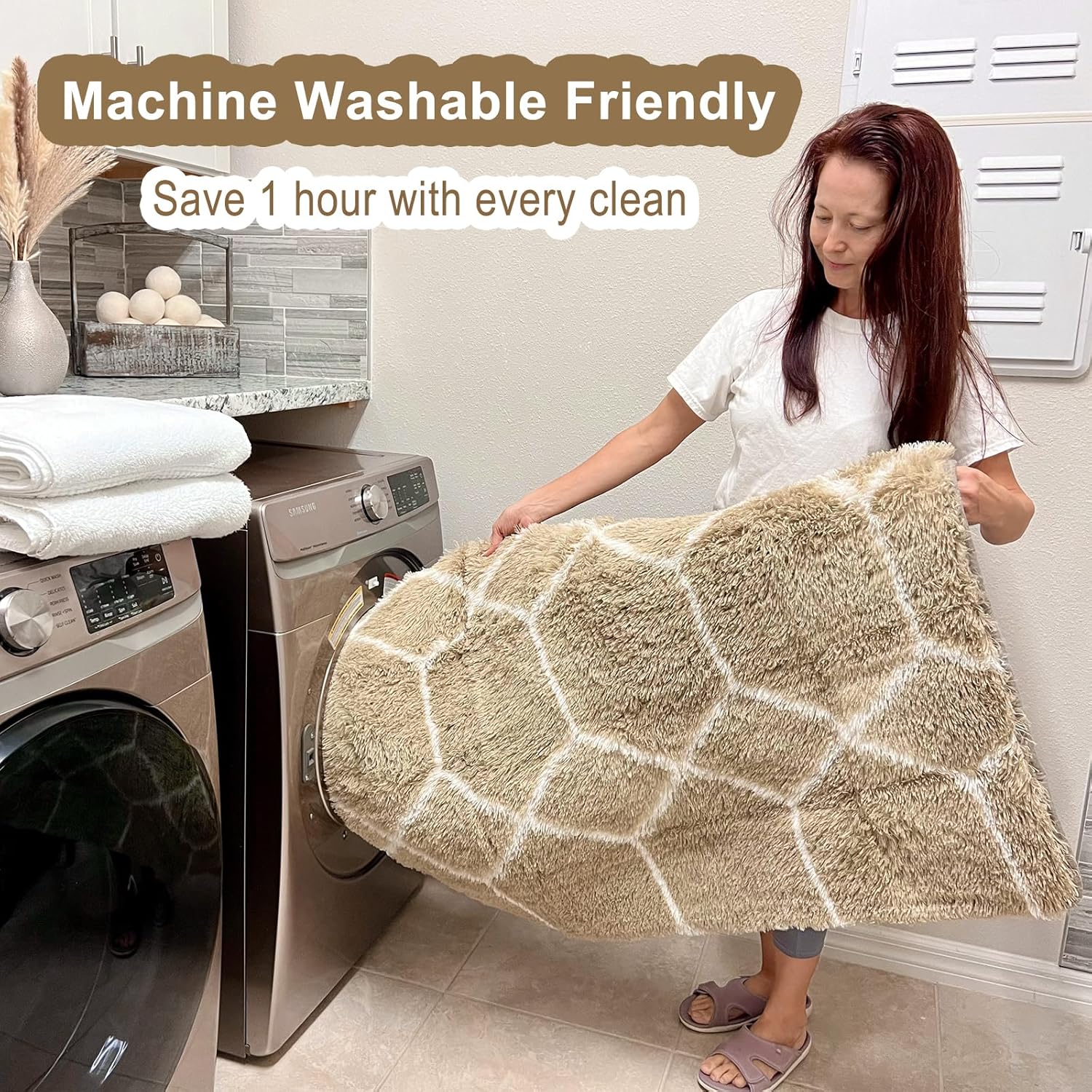 - [ Modern Home Decor ]: Decorate your home with the stylish and luxurious geometric rug, and enjoy the comfort and elegance the faux fur rug provides whether in your living room or bedroom. Show off your impeccable taste with this plush room rug. It's perfect for the living room, bedroom, dorm room, nursery, children's room, girl's room, boy's room, playroom, closet, dining room, and home office.