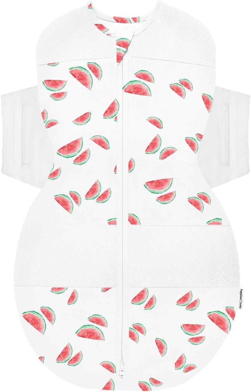 Happiest Baby SNOO Sleep Sack - 100% Organic Cotton Baby Swaddle Blanket - Doctor Designed Promotes Healthy Hip Development (Ivory Watermelons, Large)