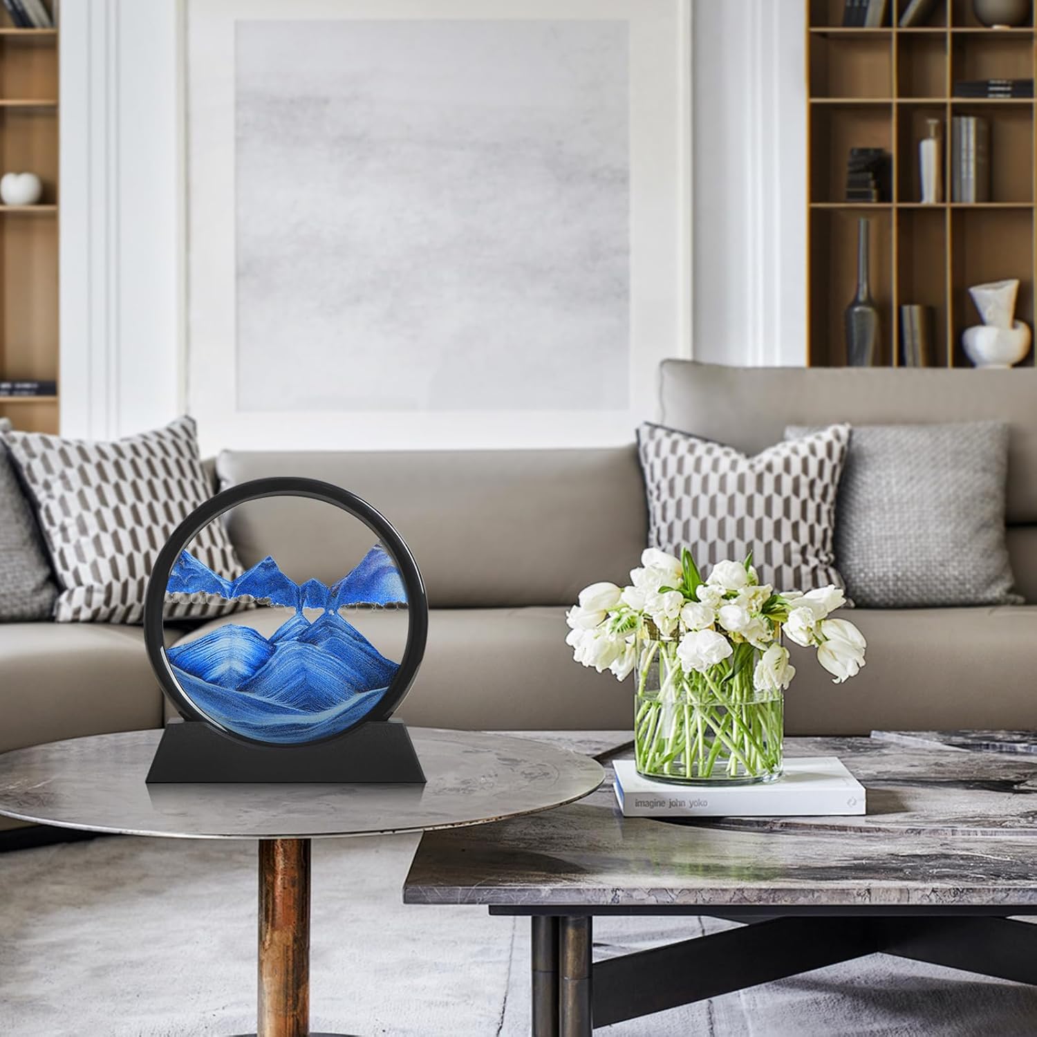 - CREATIVE DECORATION: The sand painting features an excellent design that adds meaning to your space. With its 360° rotation, each turn brings a new image as the sand starts to move. This visually pleasing artwork creates a sense of calm and relaxation, making it a glamorous decoration for any occasion.