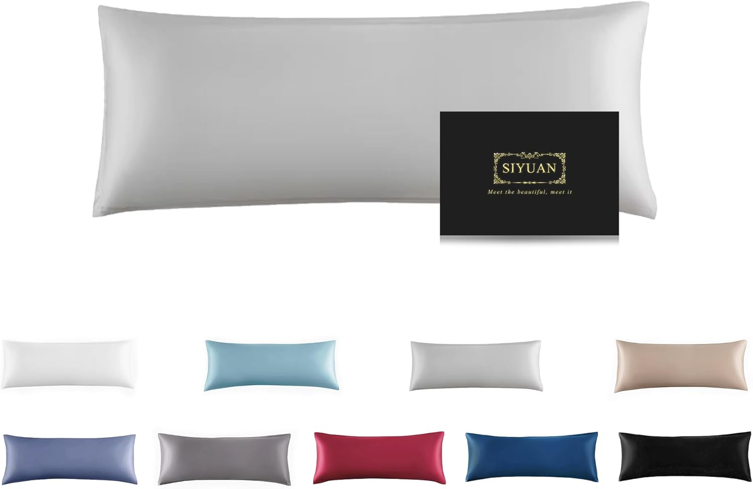 Mulberry Silk Pillowcase for Hair and Skin,Cooling Silk Pillow Case with Hidden Zipper,Allergen Proof Dual Sides Soft Breathable Smooth Silk Pillow Cover for Women (Light Gray, Body)