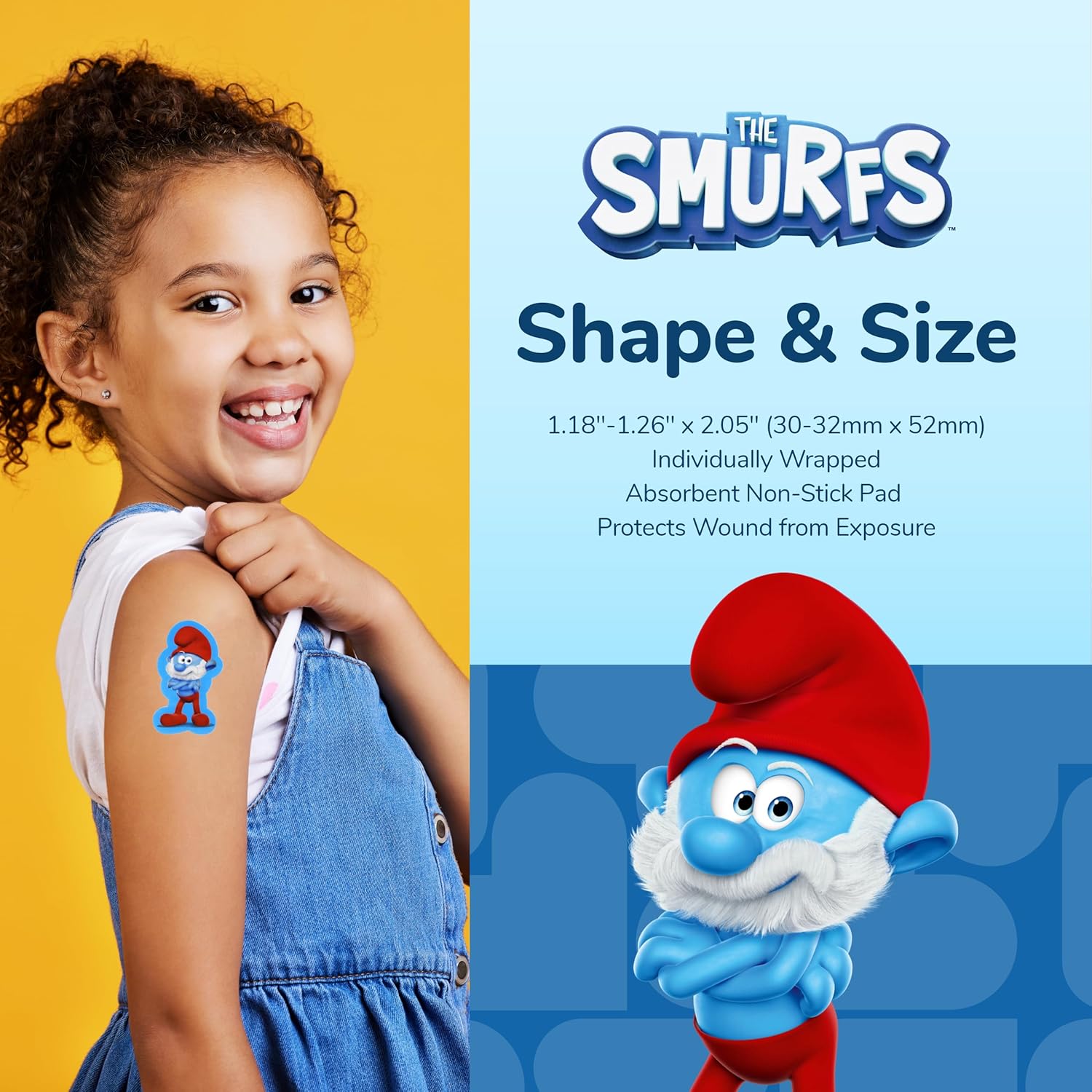 BioSwiss Bandages, The Smurfs in 3D Shaped Self Adhesive Bandage, Latex Free Sterile Wound Care, Fun First Aid Kit Supplies for Kids and Adults, 24 Count Box