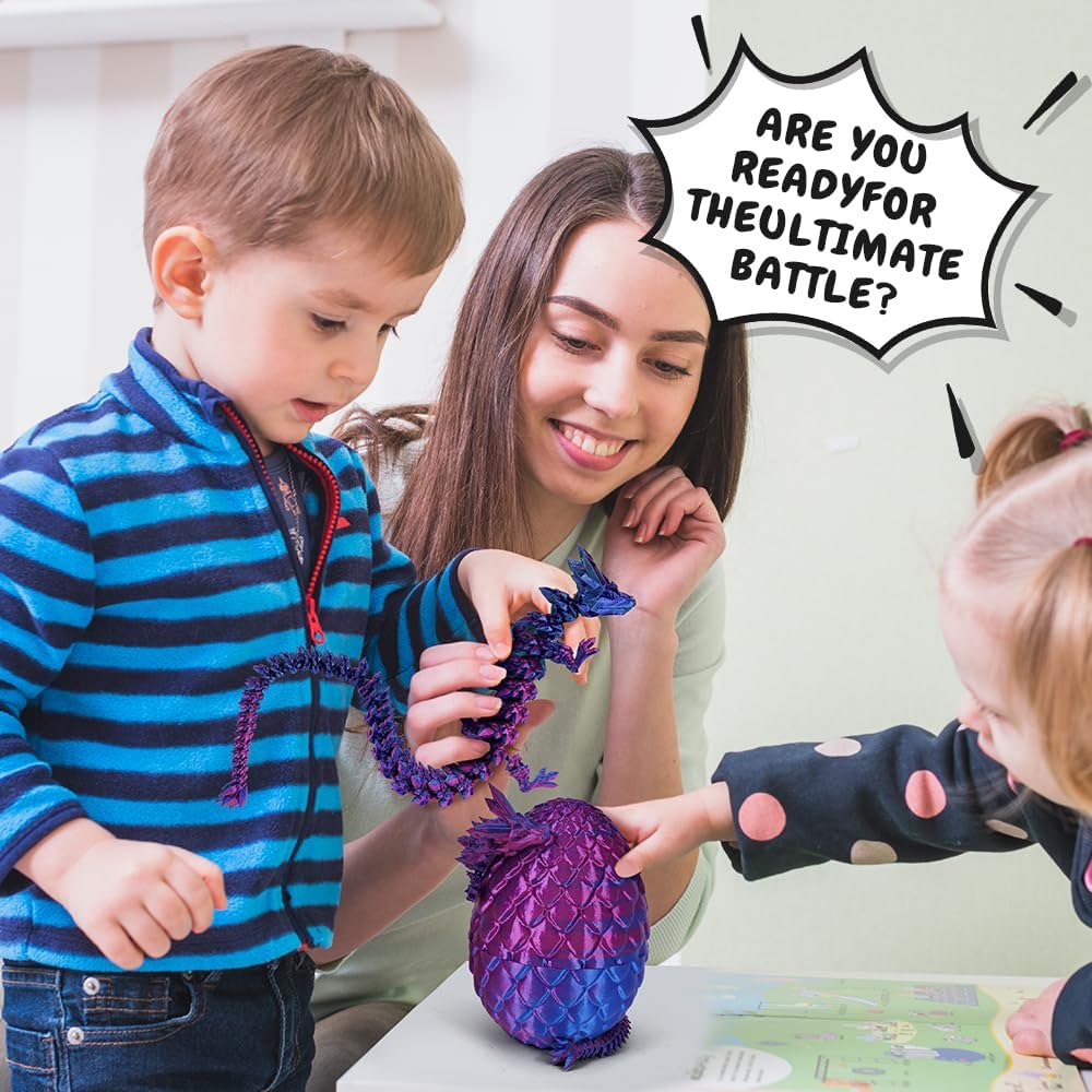 3D Printed Dragon Egg, Mystery Crystal Dragon Egg Fidget Toys Surprise, Articulated Crystal Dragon Eggs with Dragon Inside(Laser Purple)