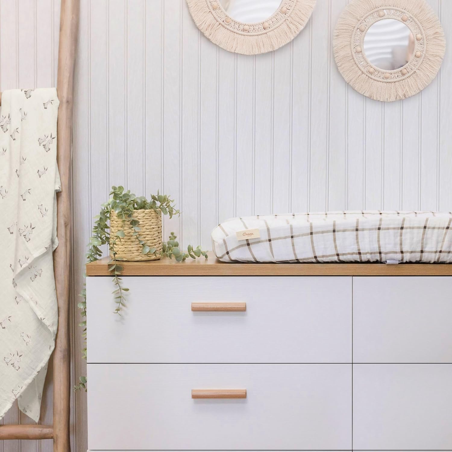 - Nursery Style - Elevate your baby’s nursery with our chic check-patterned cover, crafted to add a serene touch with its natural color palette, blending seamlessly with any décor and makes a perfect registry gift