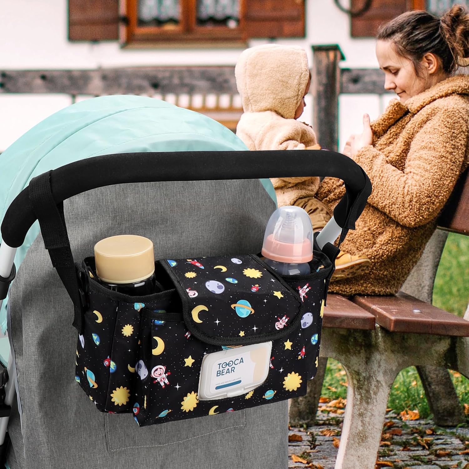 - Multiple Usage Methods : It can be hung as a stroller cup holder organizer on the stroller. When you don't need to use a stroller, you can also install the accompanying strap and carry this organizer bag for easy outing.