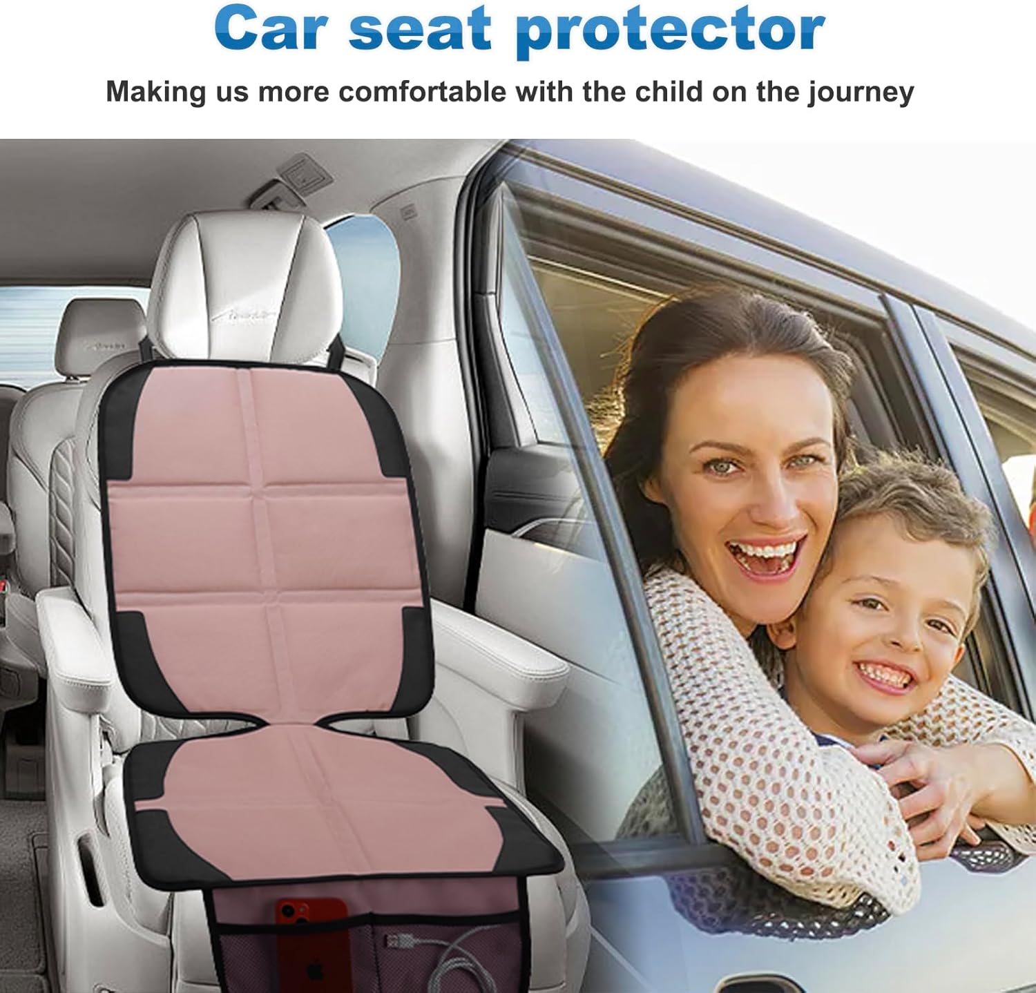 - Adjust the car seat protector top safaty straps and slip the flap into the car seat cushions. Non-slip backing increase friction and and prevents sliding, allows the child car seat protector to fit securely on the car seat, easy to install and use