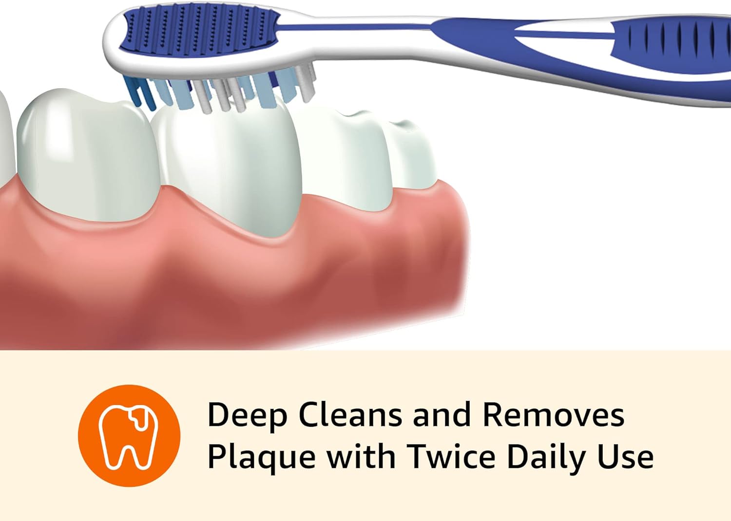 - Soft bristles; angled end bristles easily reach back teeth