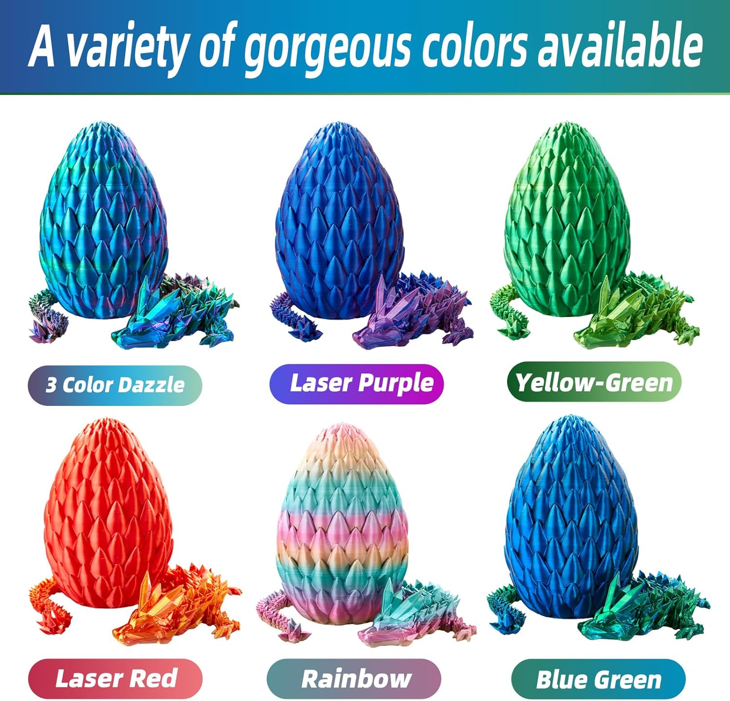 Dragon Egg,15in Crystal Dragon,Surprise Egg,Articulated Dragon,3D Printed Gift Toy,Fidget Toys for Autism/ADHD, Executive Desk Toys,Home Office Decor (3 Color Dazzle)