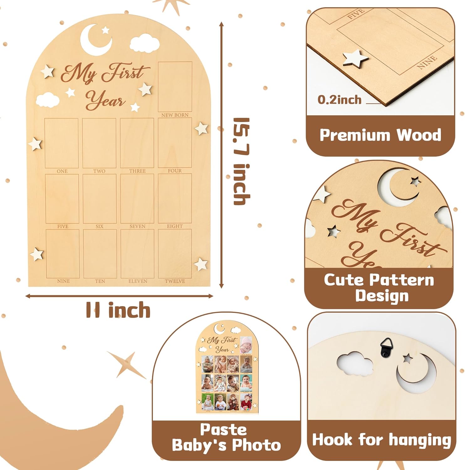 - Wide Applications: Our baby's 1st year photo display wooden plaque can easily match any first birthday party and home decor. You can hang or place it in the nursery, bedroom, living room, desk and various other places to make your home look warm and sweet. You can also share your happy moments with your family and friends.