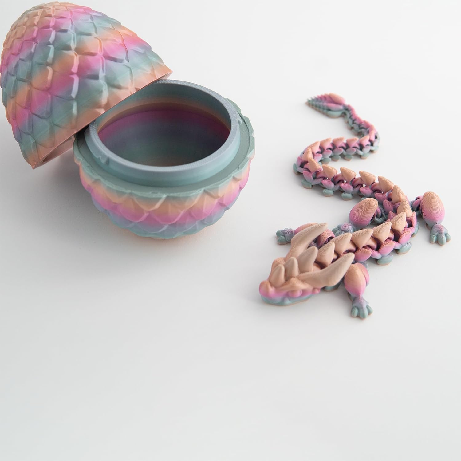 - 【3D Printed Dragon and Egg Set】- 3D printed in PLA, a food safe plastic. Dragon Sizes : 12" in Length , Dragon Egg Size: 5" in Height.