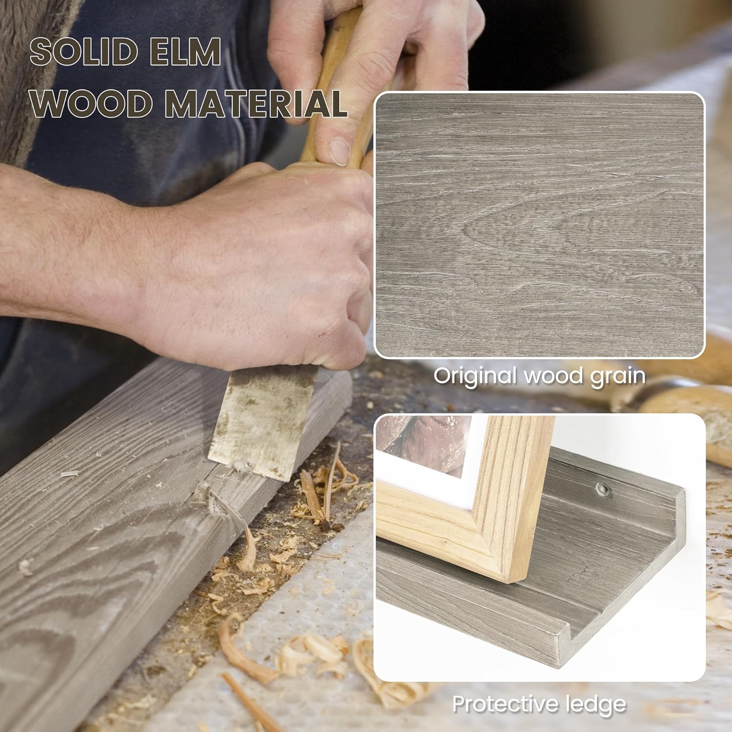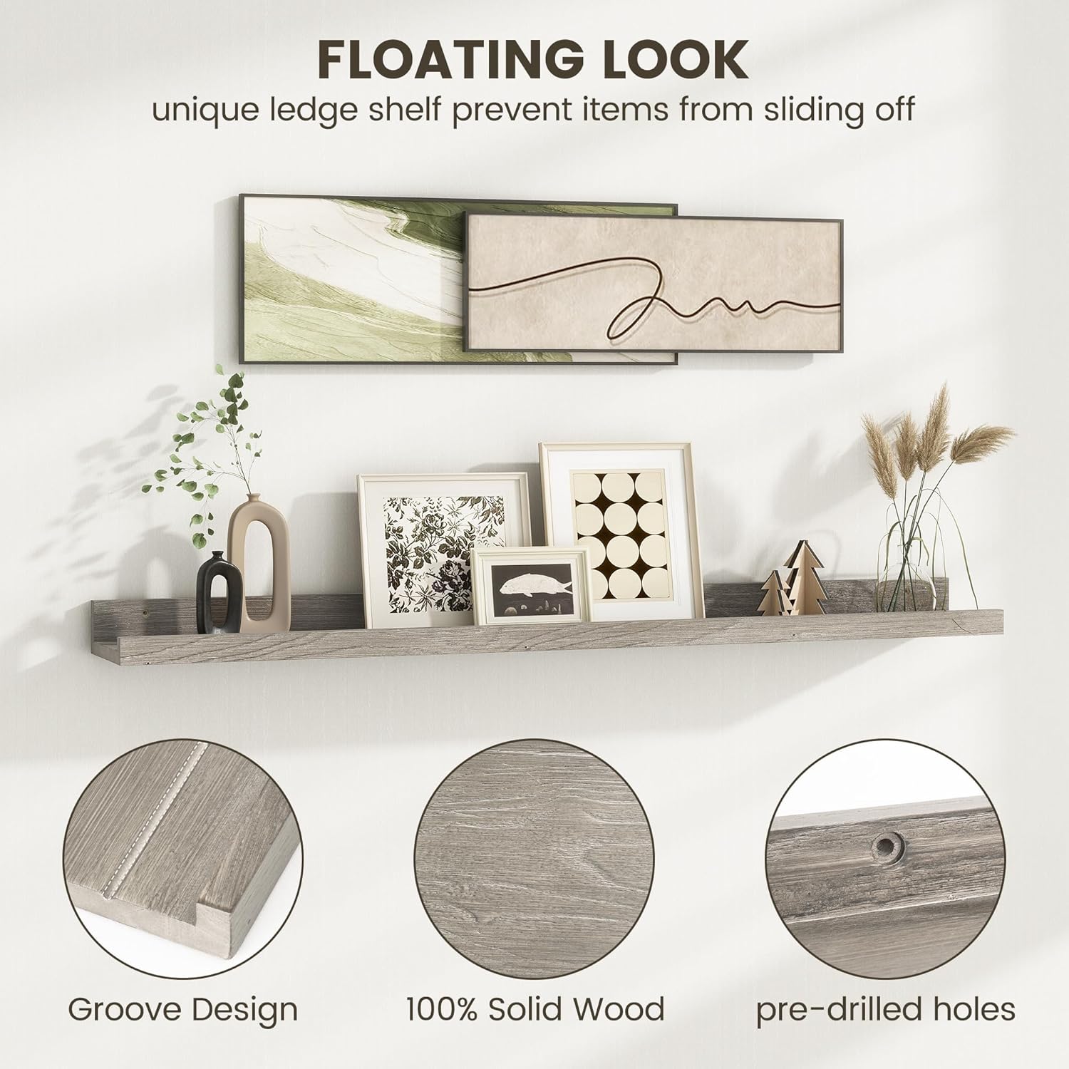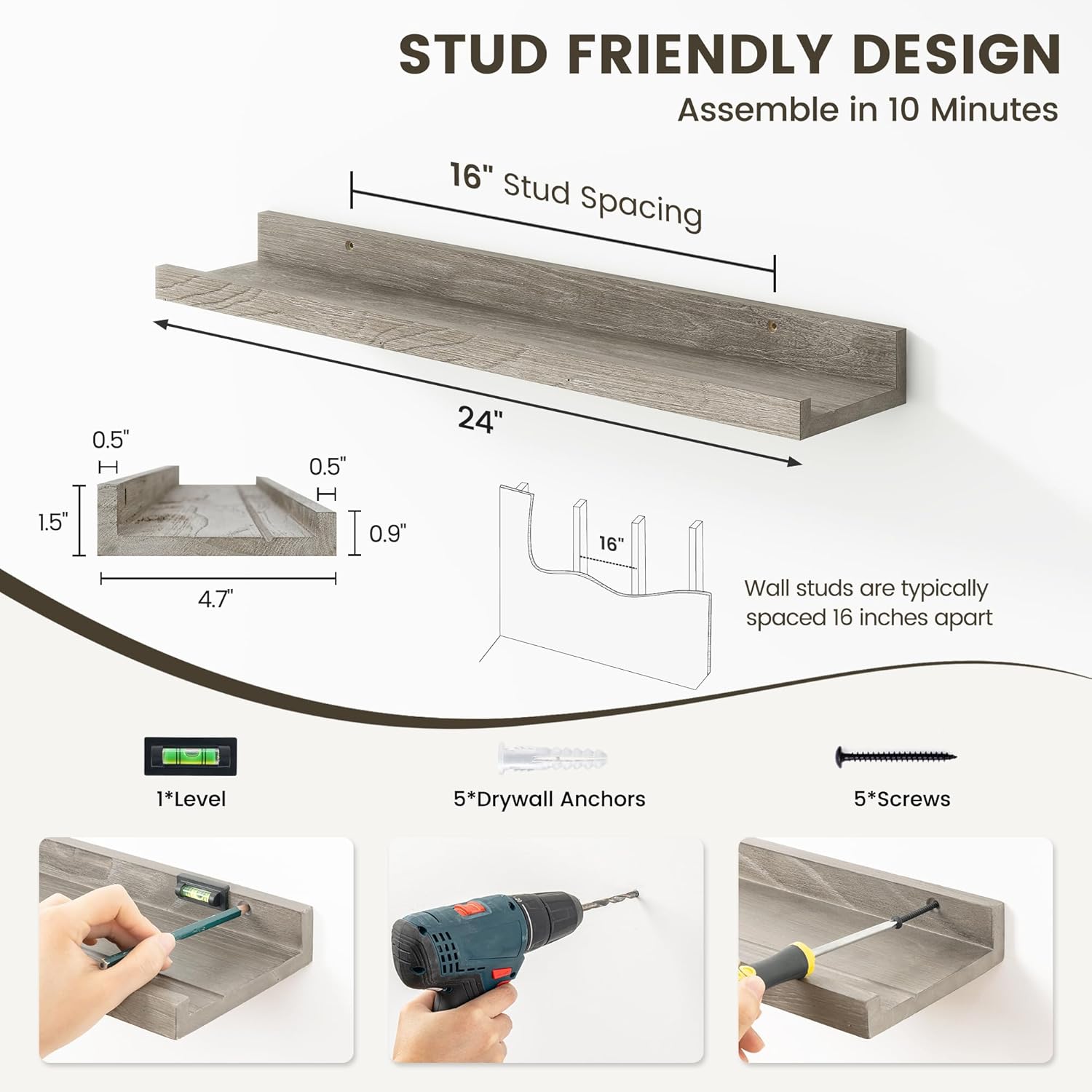 Picture Ledge Shelf - 24 Inches Floating Shelves Set of 2 - Rustic Elm Wood Ledge Shelves for Toys Storage, Kids Bookshelf Wall Mounted for Bedroom, Living Room, Kitchen - 24 Inches - Grey