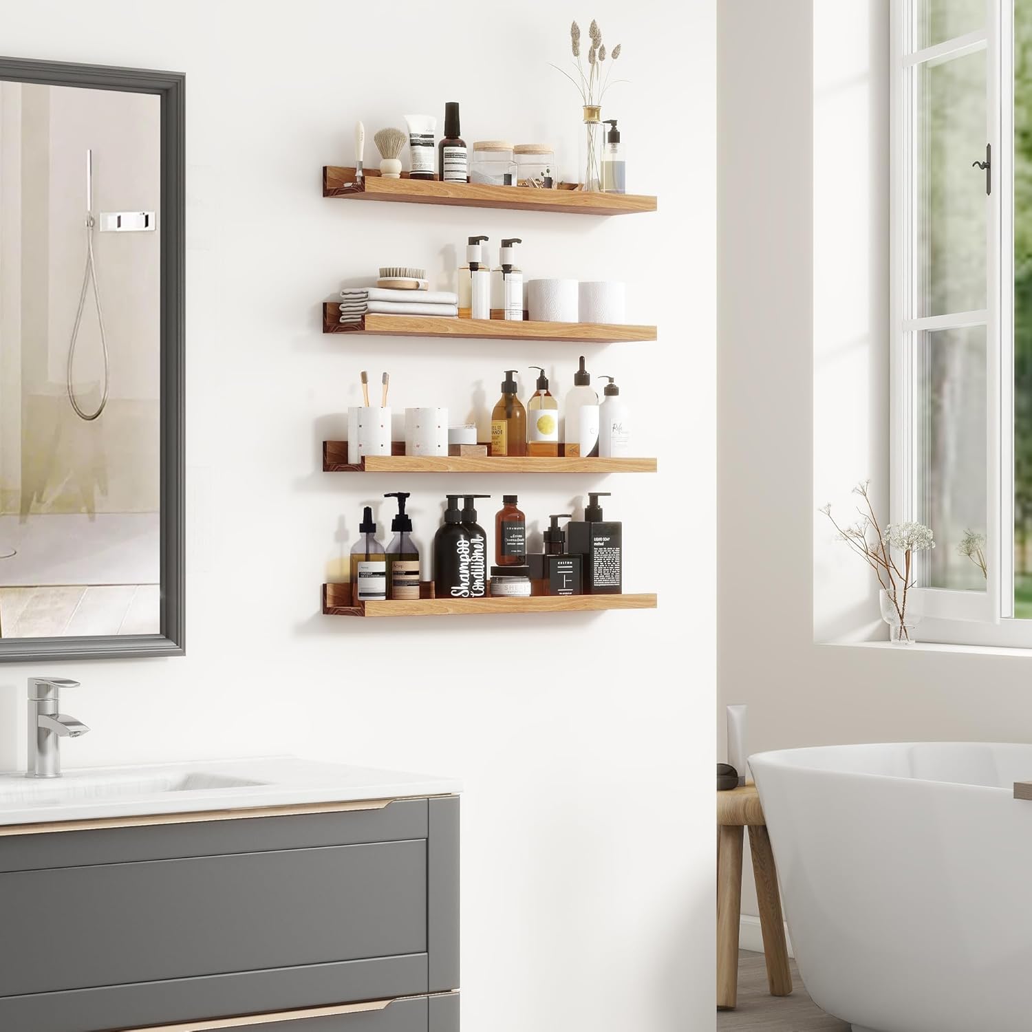 - 【Wall-Mounted Floating Shelves】Add style and storage to any room with these floating shelves. Perfect for showing off home decor, photos, plants, and more. Place them above the fireplace, entryway, desk, or in other unused wall spaces to instantly enhance your space.