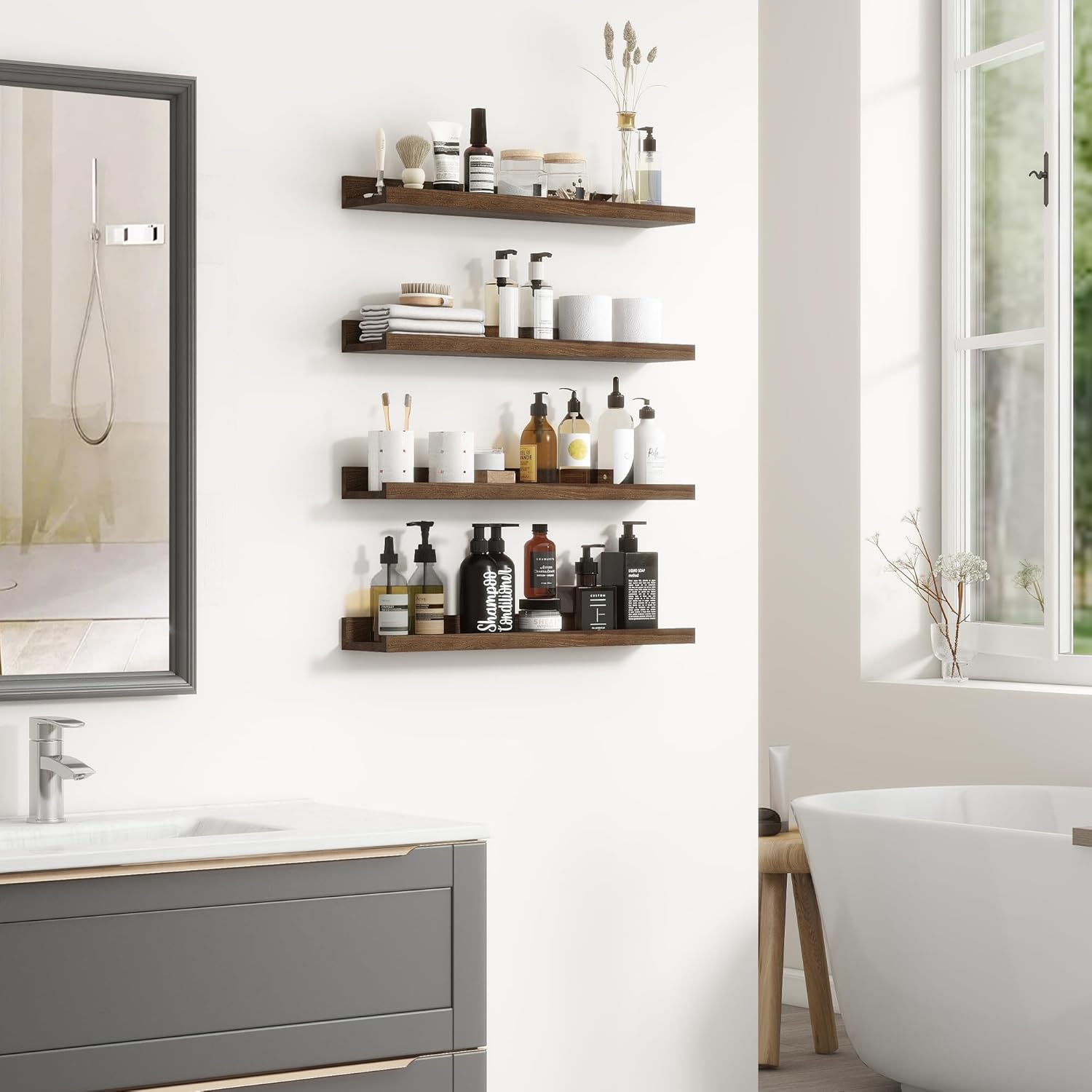 Picture Ledge Shelf - 24 Inches Floating Shelves Set of 2 - Rustic Elm Wood Ledge Shelves for Toys Storage, Kids Bookshelf Wall Mounted for Bedroom, Living Room, Kitchen - 24 Inches - Walnut Color