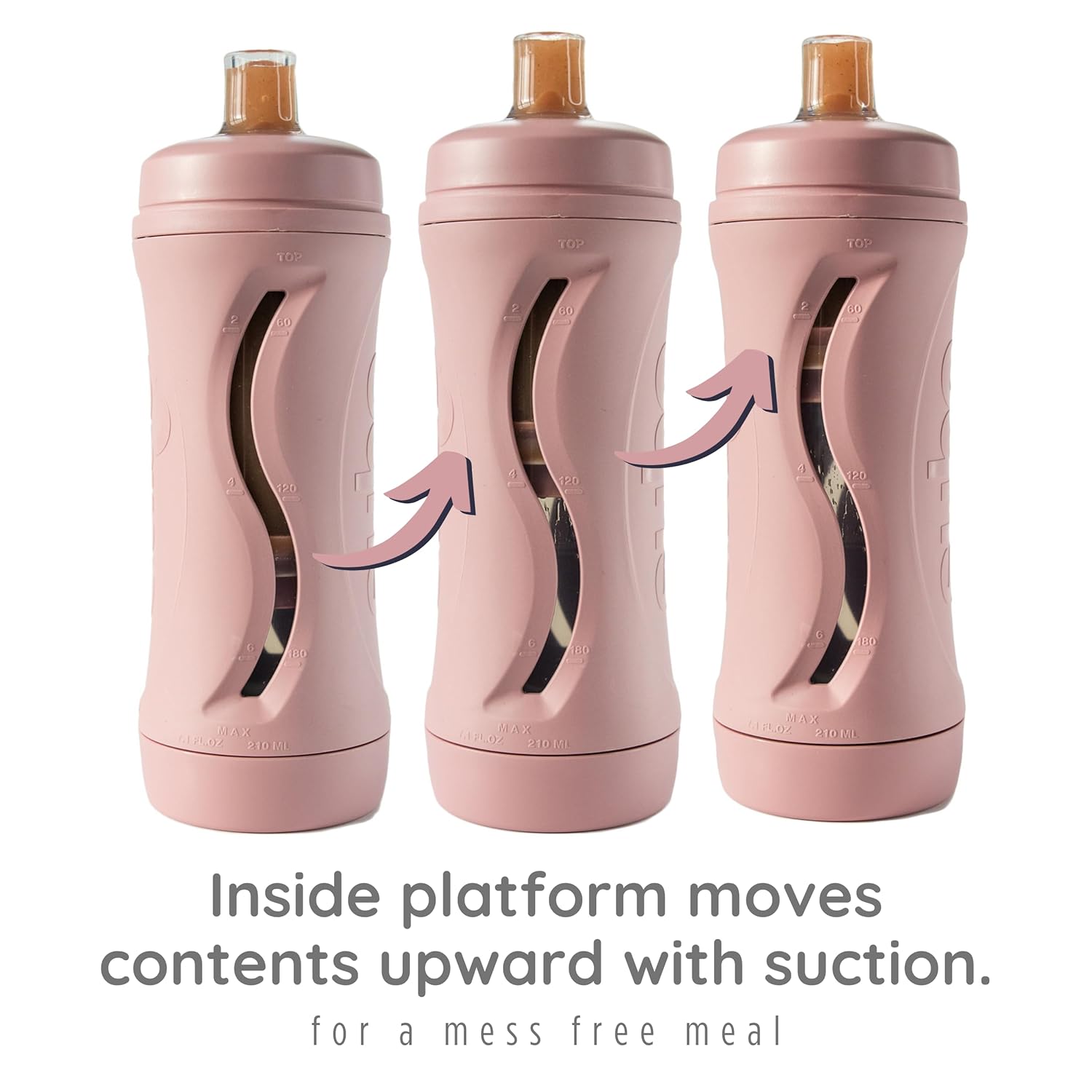 Subo Baby Food Bottle Starter Set | No Mess Baby Toddler Self Feeder | Squeeze Free Design for Purees, Smoothies, Yogurt, Oatmeal, or Thickened Liquids | Reusable Silicone Washable Cup (Rose)