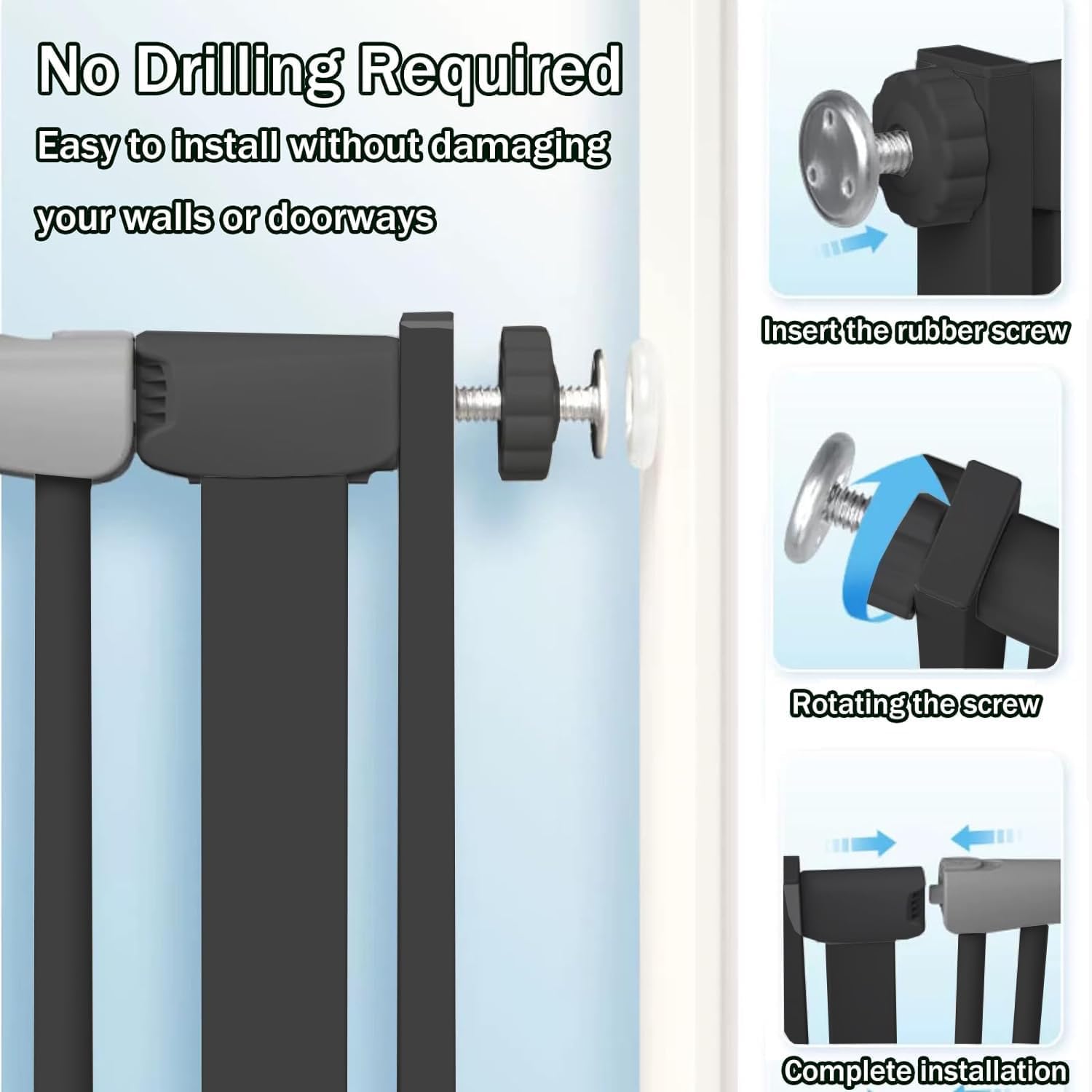 - 【51 Inch Extra Tall Gate】 Gate stands 51.18 Inch tall for added security, which is much taller than most extra tall cat gates, thus effectively preventing pet cats from jumping out. The included 2 extensions allow for a customizable width between 29.92" and 43" . Please measure your openings before purchase this wide baby gate.
