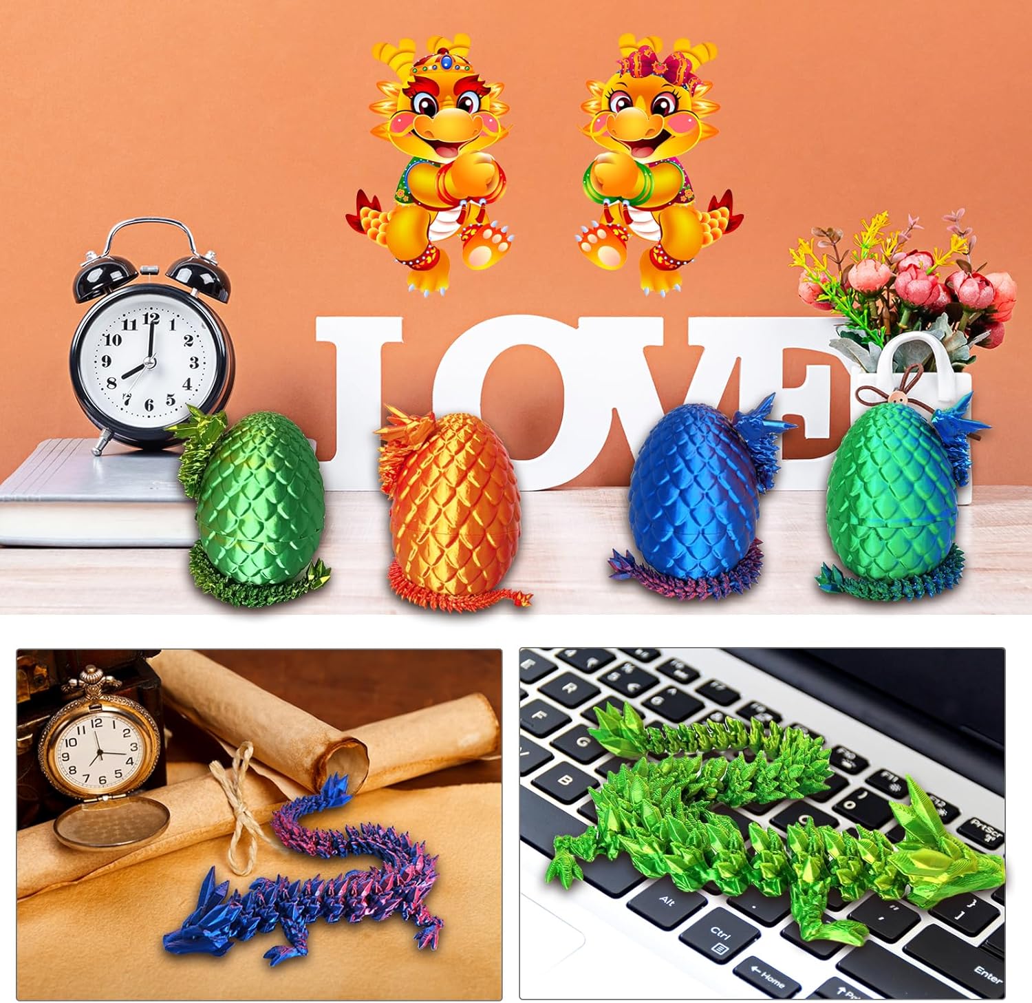 - 【Unique Design】11.2 Inch dragon fidget toy and Dragon Egg Toy Carefully crafted using amazing 3D printing technology, our dragon fidget toy can be used as an educational tool to inspire imaginative stories and create learning opportunities while also inspiring DIY creativity for endless exploration. The dragon egg's threaded design allows the 3-d printed dragon figurine to be safely stored inside,Making it the perfect dragon decor piece for your home or office.