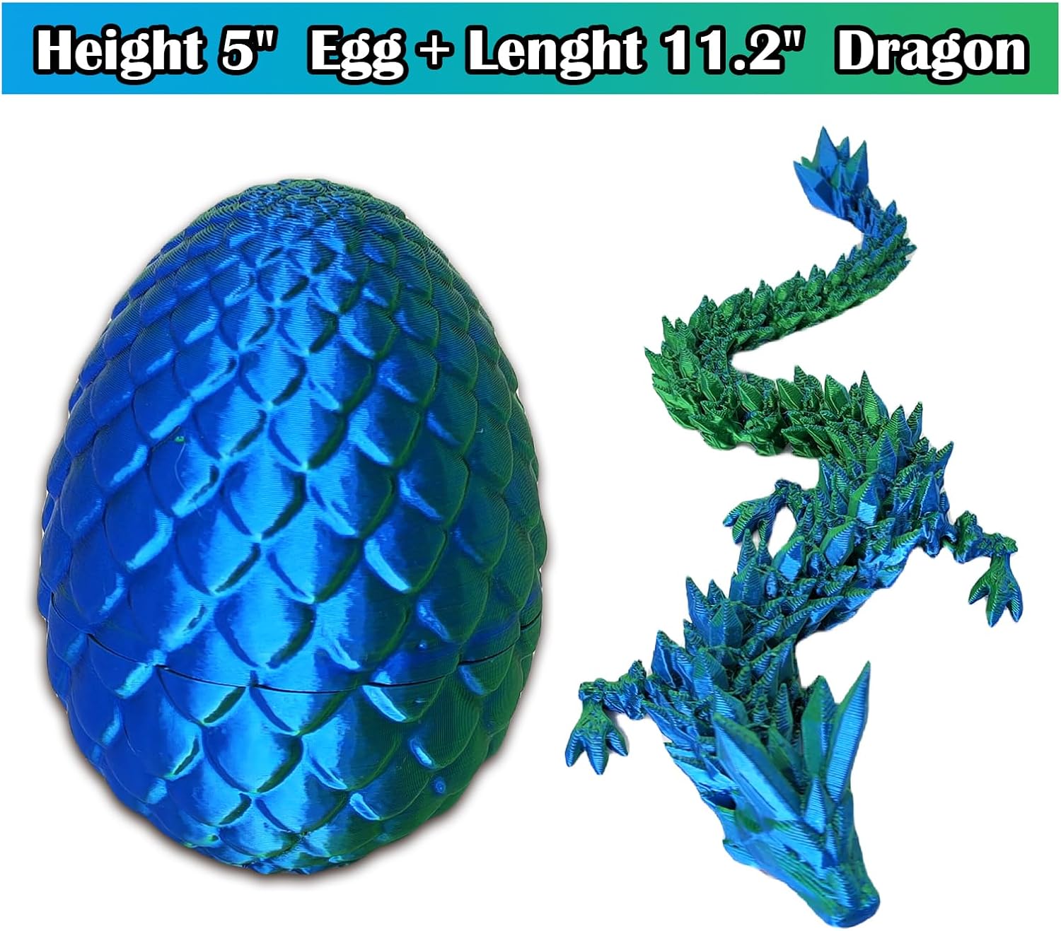- 【Unique Design】11.2 Inch dragon fidget toy and Dragon Egg Toy Carefully crafted using amazing 3D printing technology, our dragon fidget toy can be used as an educational tool to inspire imaginative stories and create learning opportunities while also inspiring DIY creativity for endless exploration. The dragon egg's threaded design allows the 3-d printed dragon figurine to be safely stored inside,Making it the perfect dragon decor piece for your home or office.