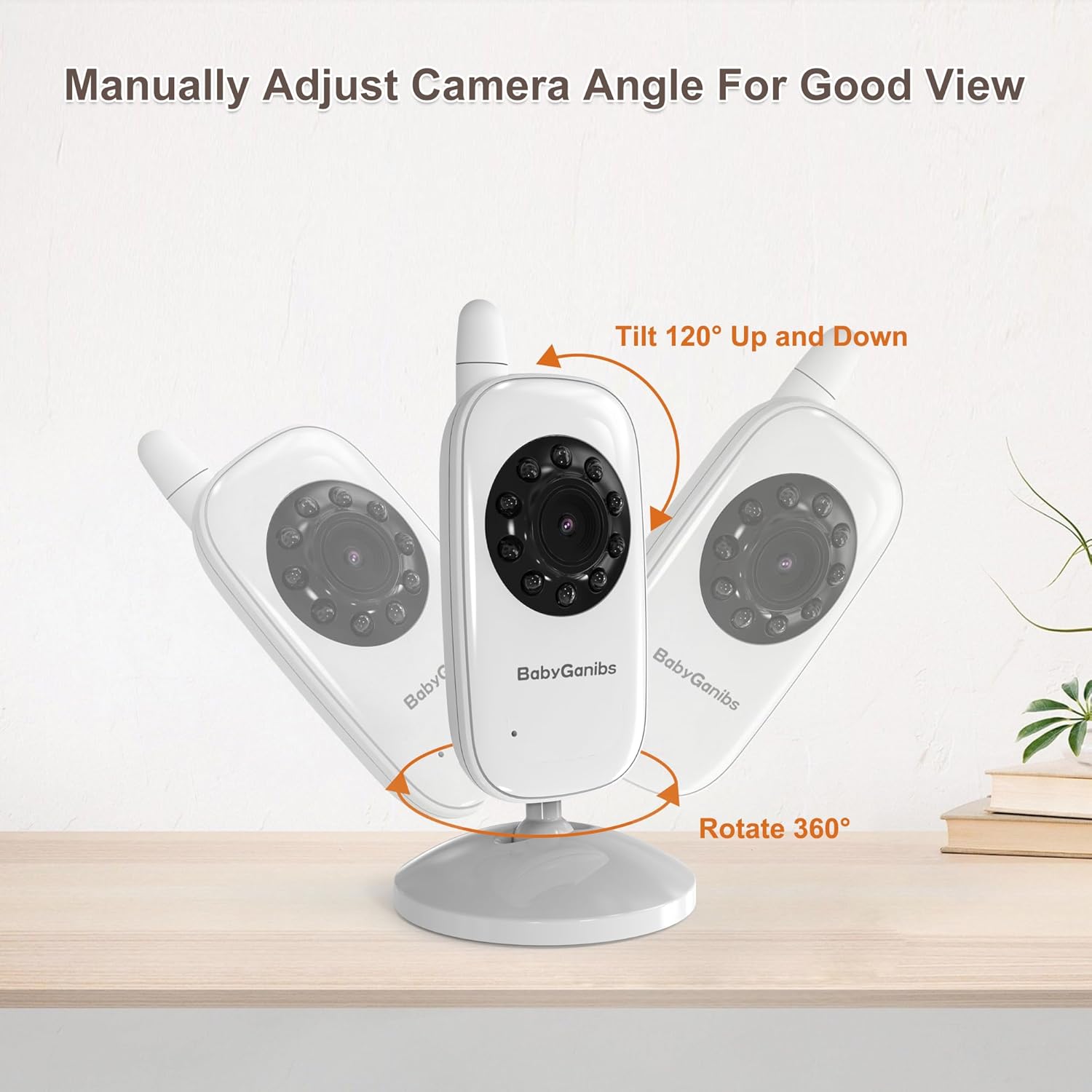 - 【Adjustable Camera Angle & 2X Digital Zoom】Our baby monitor with camera and audio can rotate 360° and tilt 120° up & down. So you can manually adjust the camera angle for best view. The video baby monitor's 2X Digital Zoom feature allows you to see details more clearly when watching your baby.