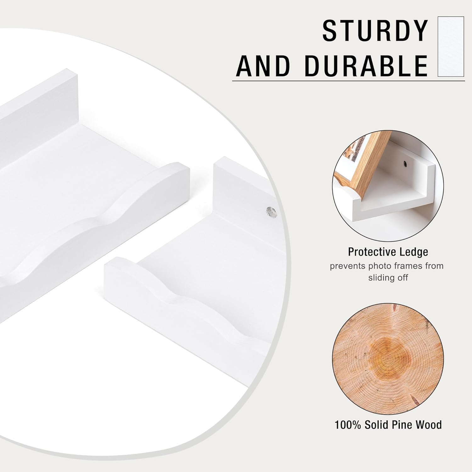 Fun Memories Picture Ledge Shelf for Wall, 48 inch Pine Wood Nursery Book Shelves Set of 2- Wall Book Shelves for Kids Room, Home Decor - Kitchen Spice-White