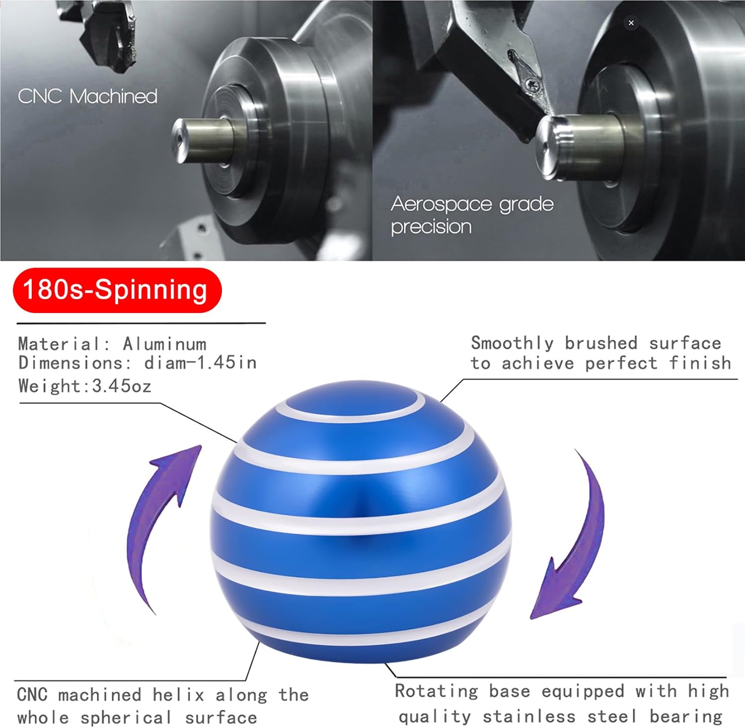 - 【Desk-Kinetic-Toys】1.48 in/0.16 lb, Spinning 180 seconds. Aluminum metal desk toy ball manufactured by CNC processing, small and exquisite.No batteries required & No tools required.