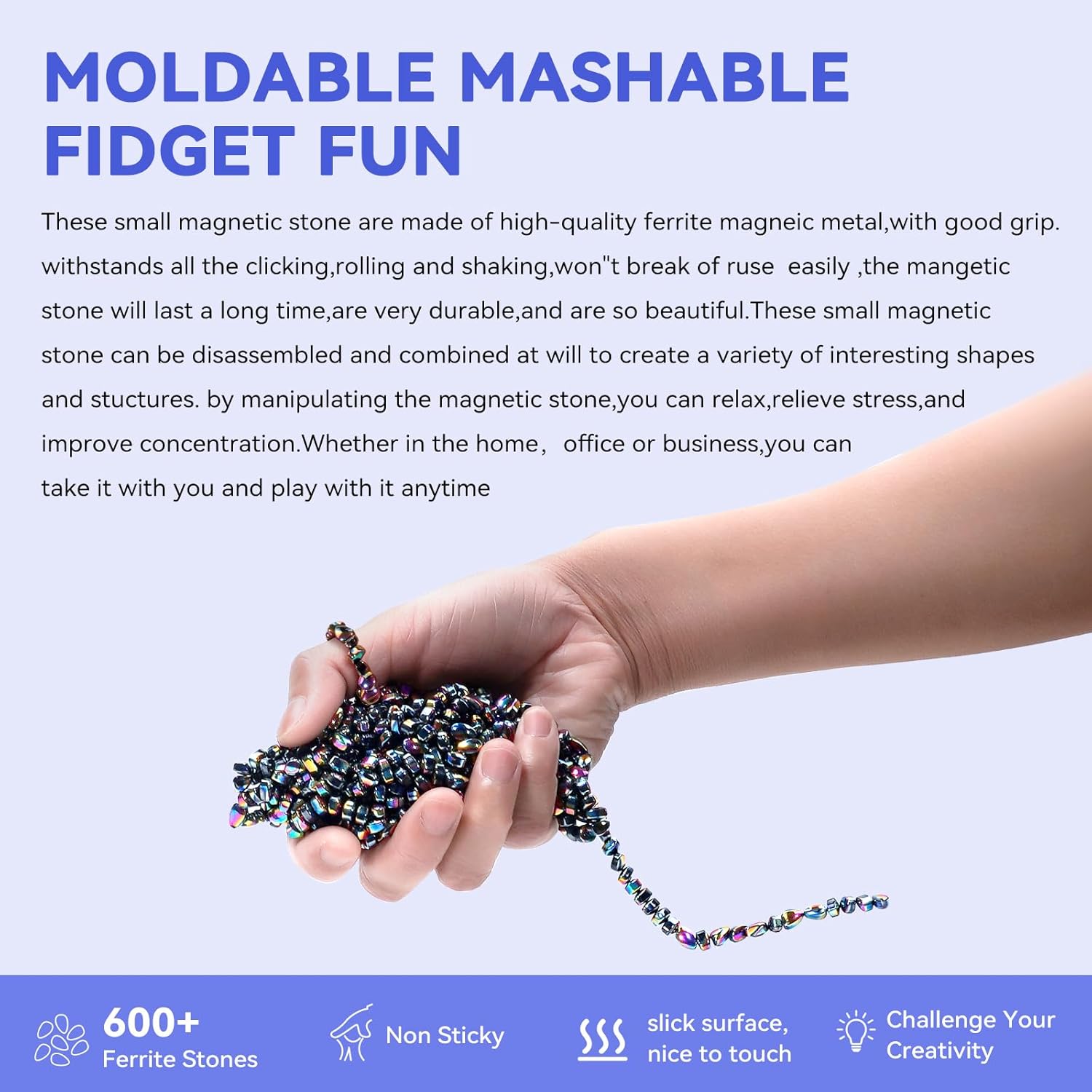 - 【Fun and Easy to Play】 It helps you concentrate on your work or reading when running your hands through these fidget magnets and makes you feel relaxed when hearing the sound of the magnet beads rubbing against with each other. with a smooth surface and soft edges that make them easy to squish or roll in your hands.
