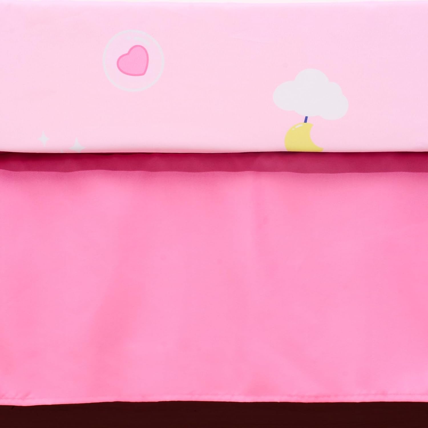 - 【CUTE PINK PRINTED】 -This unicorn nursery bedding set is designed for little girls.The baby quilt with playful unicorns and glittering stars.Instantly captures the imagination of your little baby girl.Soft baby bedding set with cartoon elements such as adorable unicorn on the clouds,little star,pink heart shaped and cloud is a favorite for babies.The comforter have ruffle that vibrant pink color with beautiful ruffles design,unique and cute.Perfect for unicorn lovers!