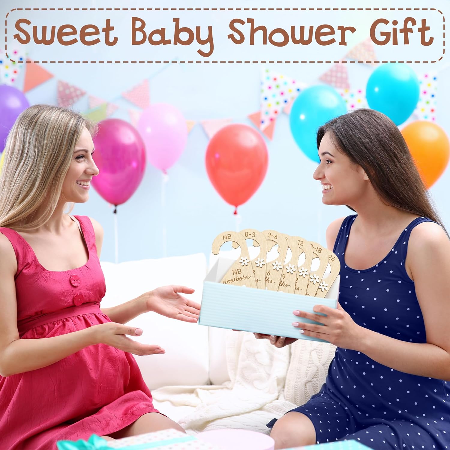 R HORSE Wooden Baby Closet Dividers - 8Pcs Double-Sided 3D Daisy Nursery Closet Organizer Baby Clothes Size Hanger Dividers Newborn Nursery Decor Birthday Gift for Boy Girl (0-24 Months)
