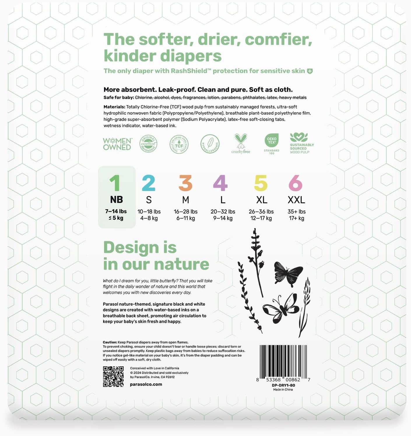 - SAFE AND CLEAN: Parasol diapers are non-toxic and free from irritants such as chlorine, alcohol, dyes, chemicals, fragrances, lotions, parabens, phthalates, latex, heavy metals and more.