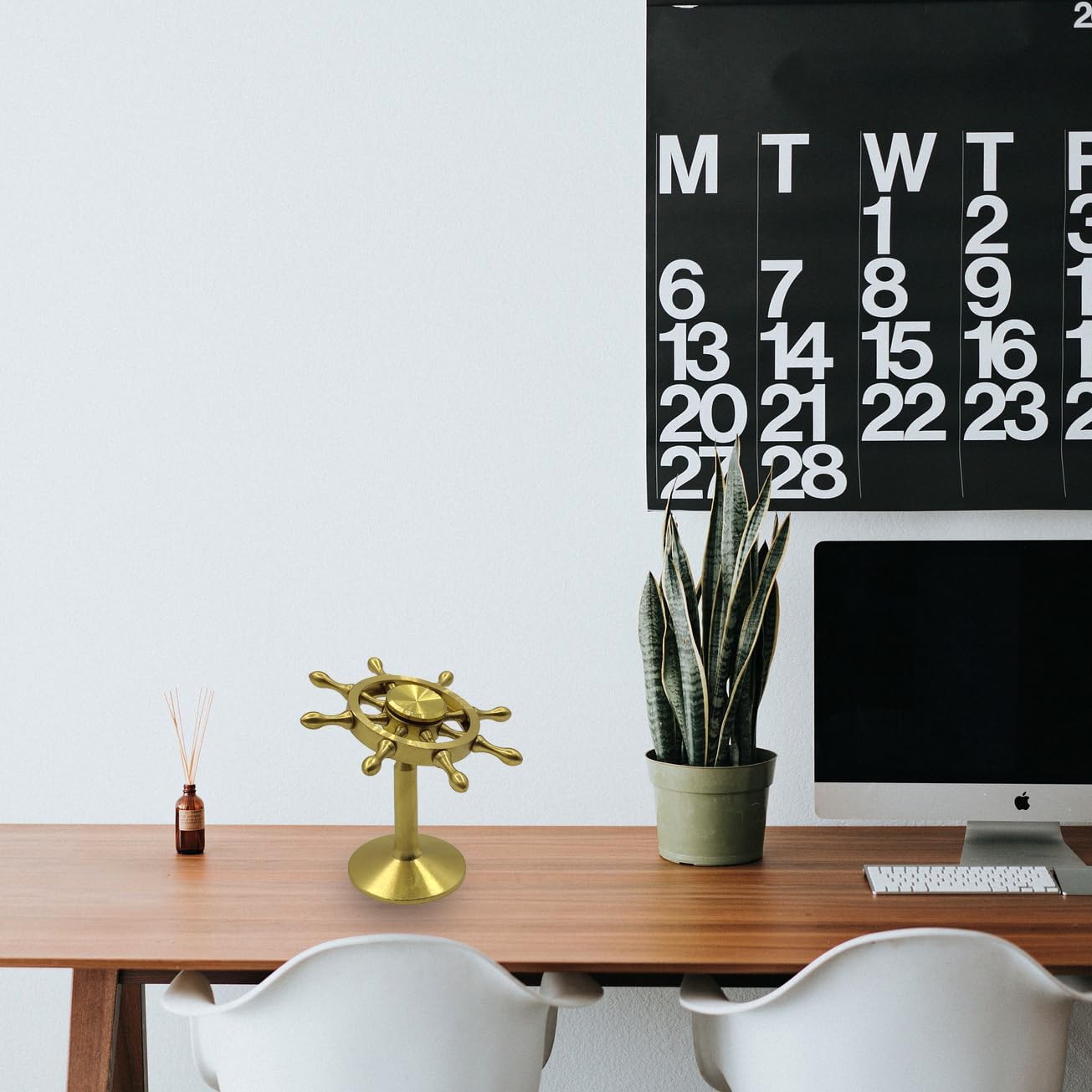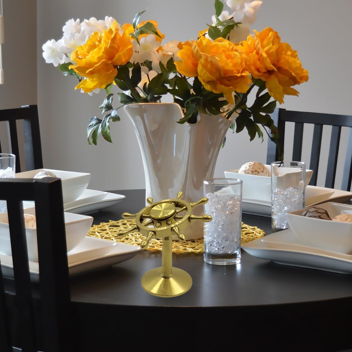 Brass Spinner Ship Wheel, Kinetic Desk Toy Spin with Stand, High Speed Bearing Metal Hand Spinners Anxiety Finger Tabletop Toys Gyro (Small)