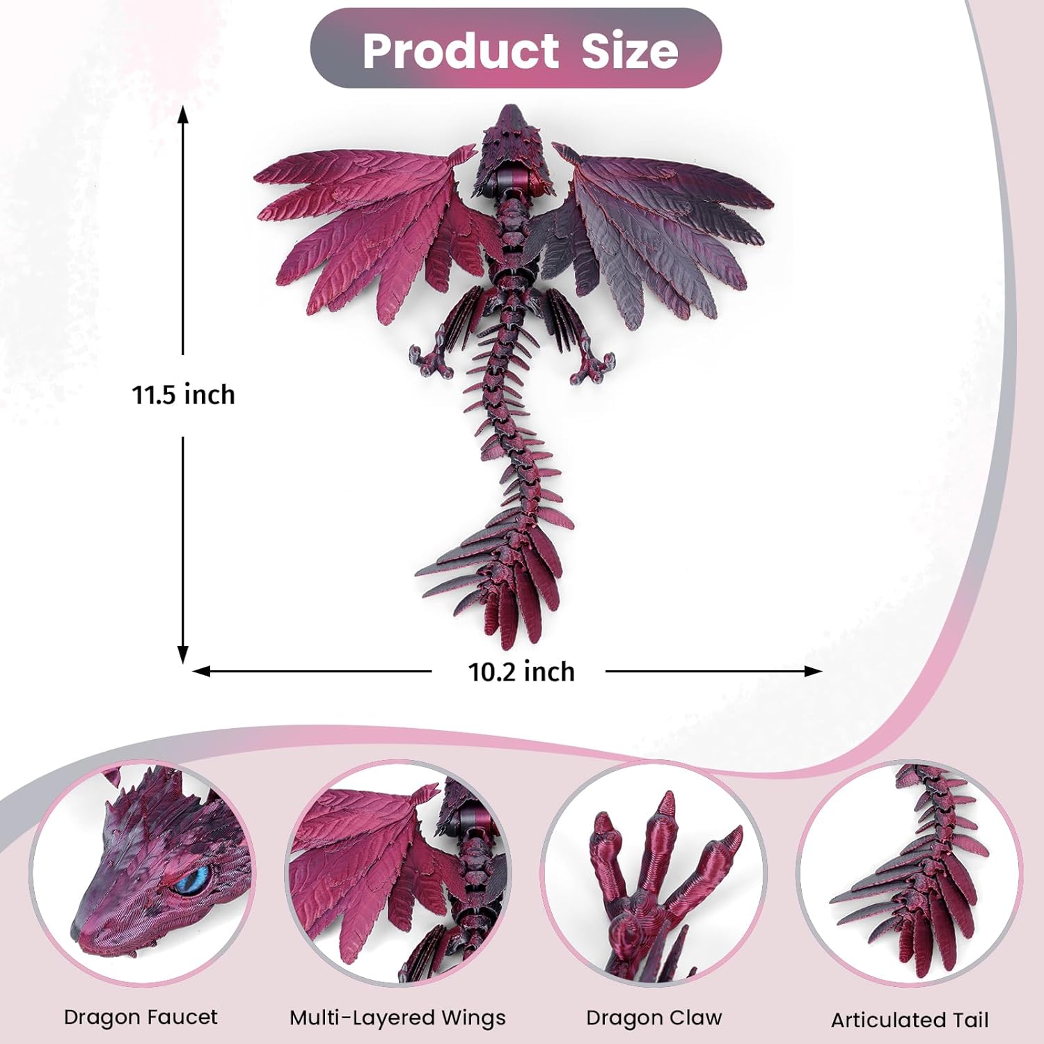 - 🏆【Exquisite Design】: This 3D printed animal is a winged dragon with exquisite design and details that make it come alive. Its adjustable wing hinge design allows it to be posed in a variety of different poses, adding to the fun of play.