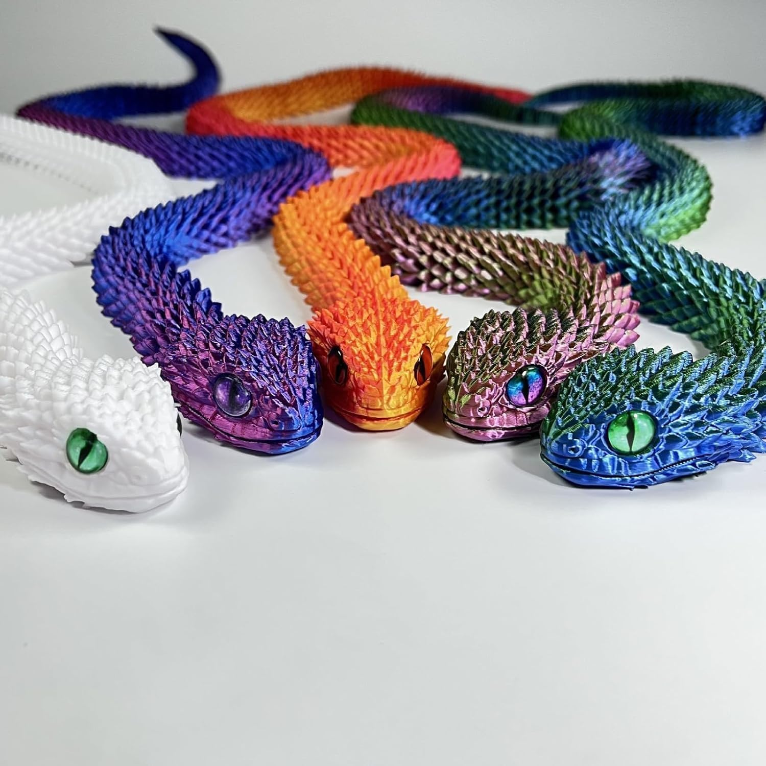 - Unique feeling - The venomous snake is not only visually stunning and endlessly fun, but also feels different from other snakes. You can play with this 3D printed snake and position it in different ways when you are stressed or irritable. Whether you choose to twist its shape or place it majestically on a shelf, the possibilities are endless.