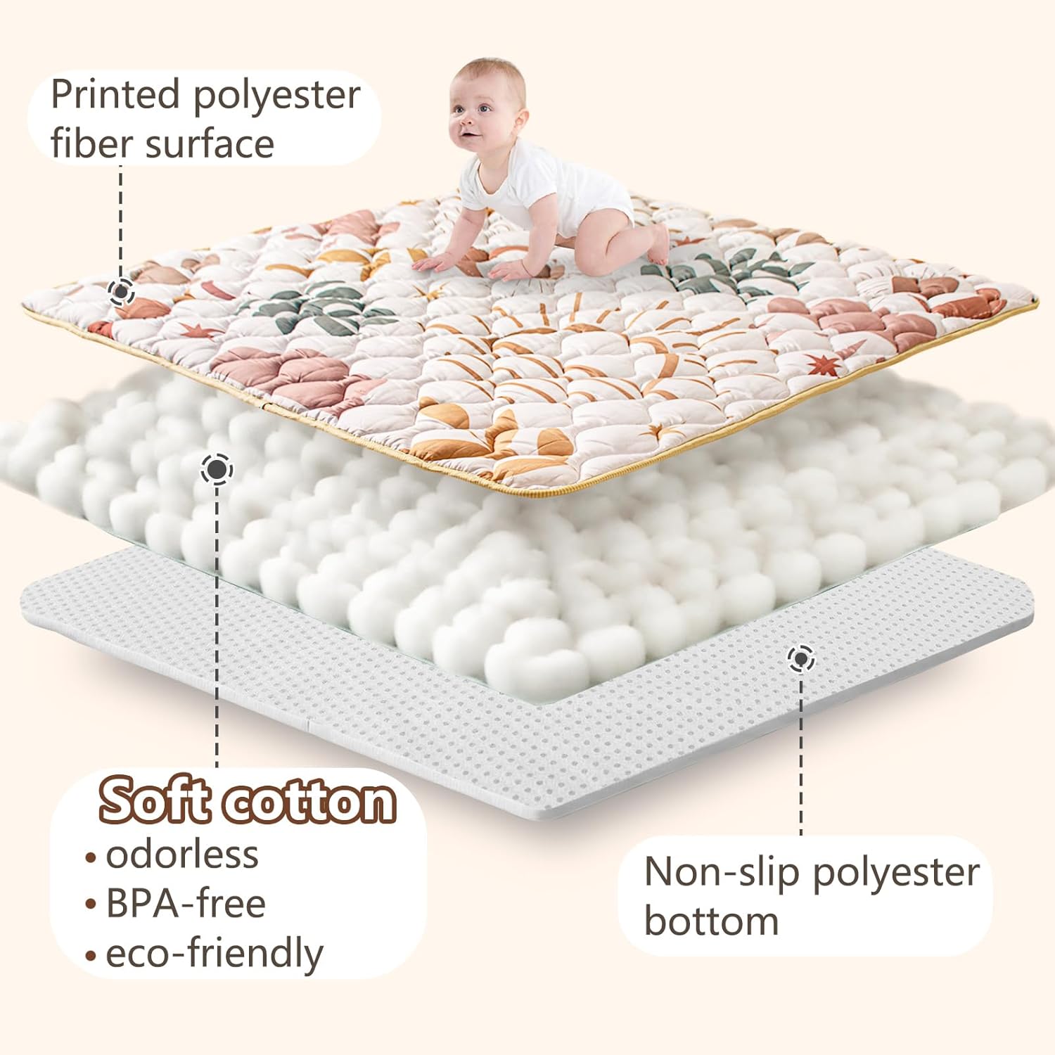 Baby Play Mat, 50x50 Playpen Mat with Super Soft Touch, Activity Mat with Upgraded Anti-Slip Bottom, Machine Washable Crawling Mat for Floor & Picnic(Boho Nature)