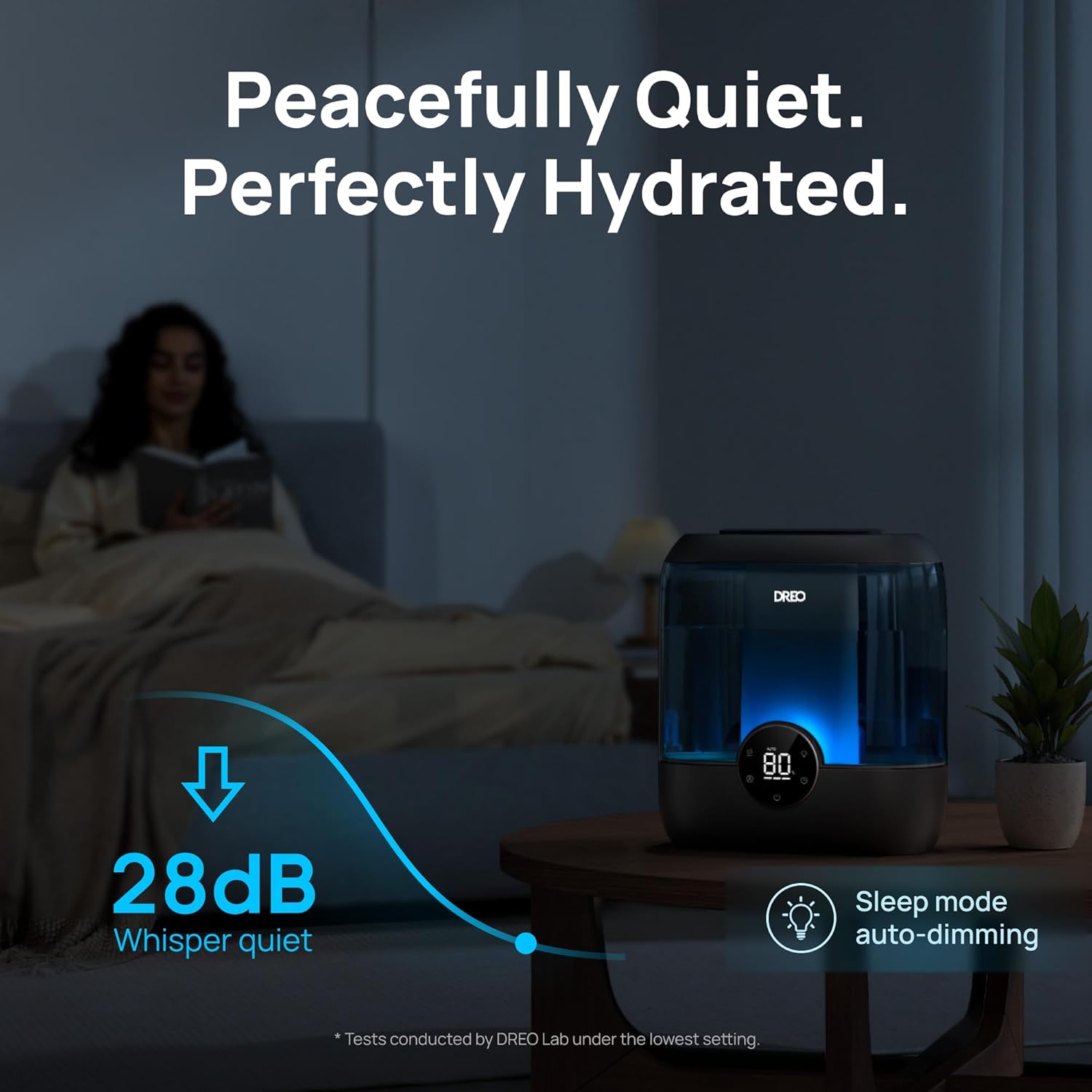 Dreo 6L Top Fill Humidifiers for Bedroom, 60H Runtime Supersized Cool Mist Humidifier for Large Room, 28 dB Quiet Baby Air Humidifiers for Nursery, Plants, Indoor, Night Light, LED Display, Ultrasonic