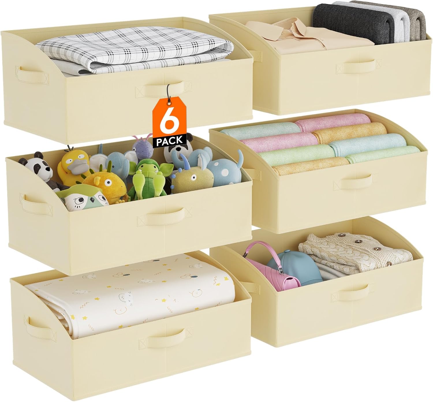 Lifewit Storage Baskets for Shelves, 6 Packs Non-woven Fabric Trapezoid Closet Organizer Bins with Handles, Foldable Clothing Containers Box for Clothes, Toy, Towel, Book, DVD, Hats, Large-Beige