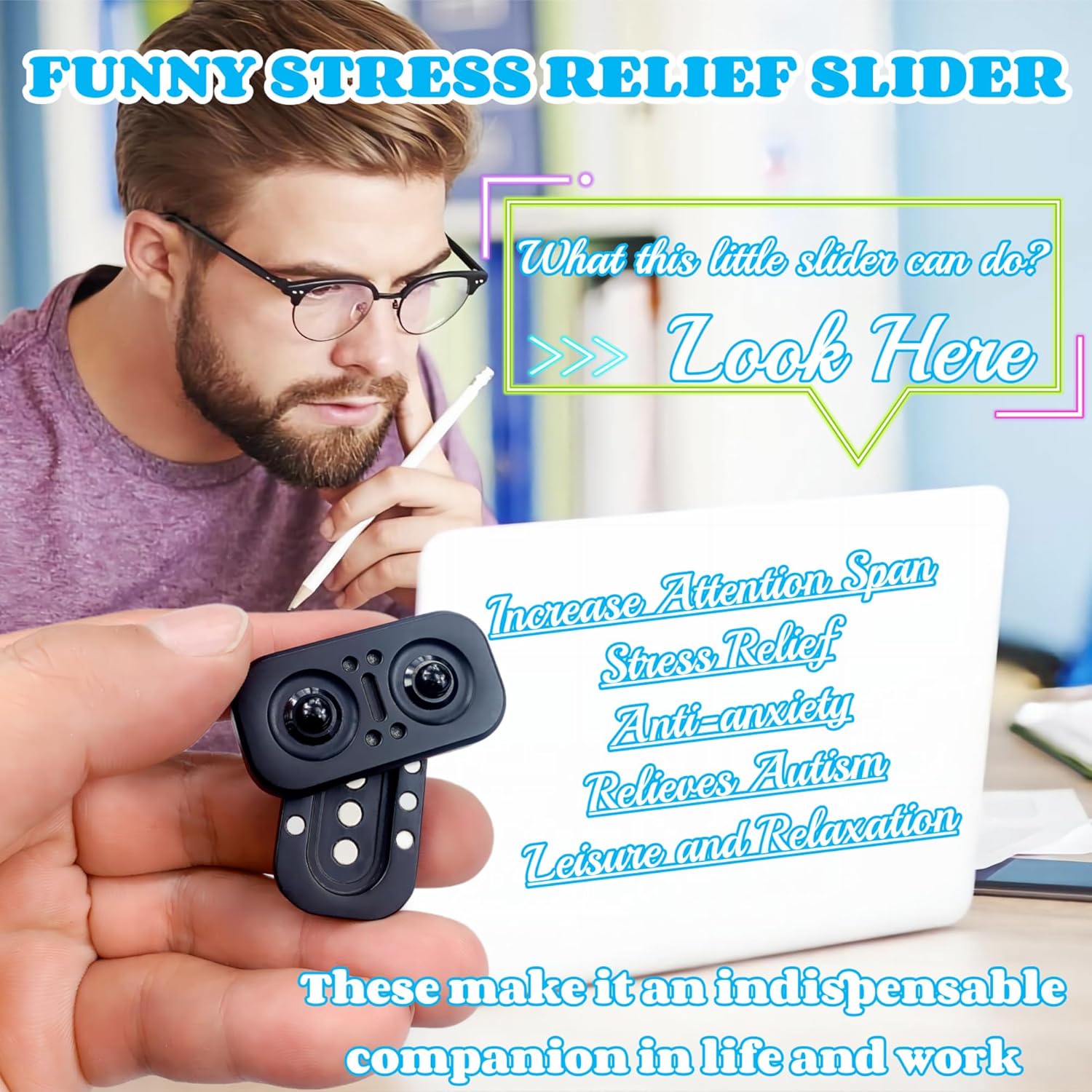 - “Stress Relief Tools”--Whether you are a student or an office worker, you may be under study/work or living stress, which over time will lead to negative emotions such as depression, hyperactivity, mania and depression. Many people successfully break their bad habits such as nail biting/smoking,etc with this funny and cool stress relief toy.Perfect for people with irritability, anxiety, low concentration, ADHD, and autism.It is a good partner in life that can not be missed.